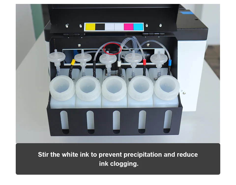 4. Циркуляция белых чернил: уменьшает засорение белых чернил, увеличивает срок службы печатающей головки