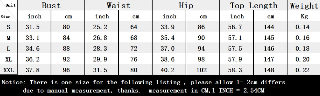 1. Из-за различных методов измерения, положения и растягивания ткани, данные будут иметь отклонение в 1-2 см. Таблица размеров приведена только для справки.