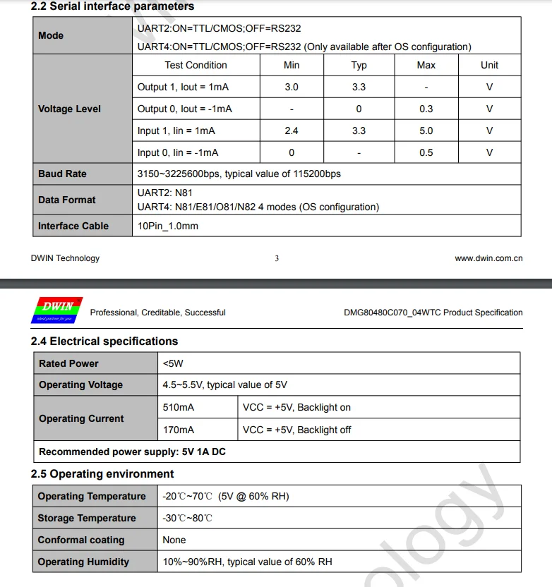 Ответ: дисплей основан на связи последовательного порта UART. TTL/RS232/RS485 доступен.