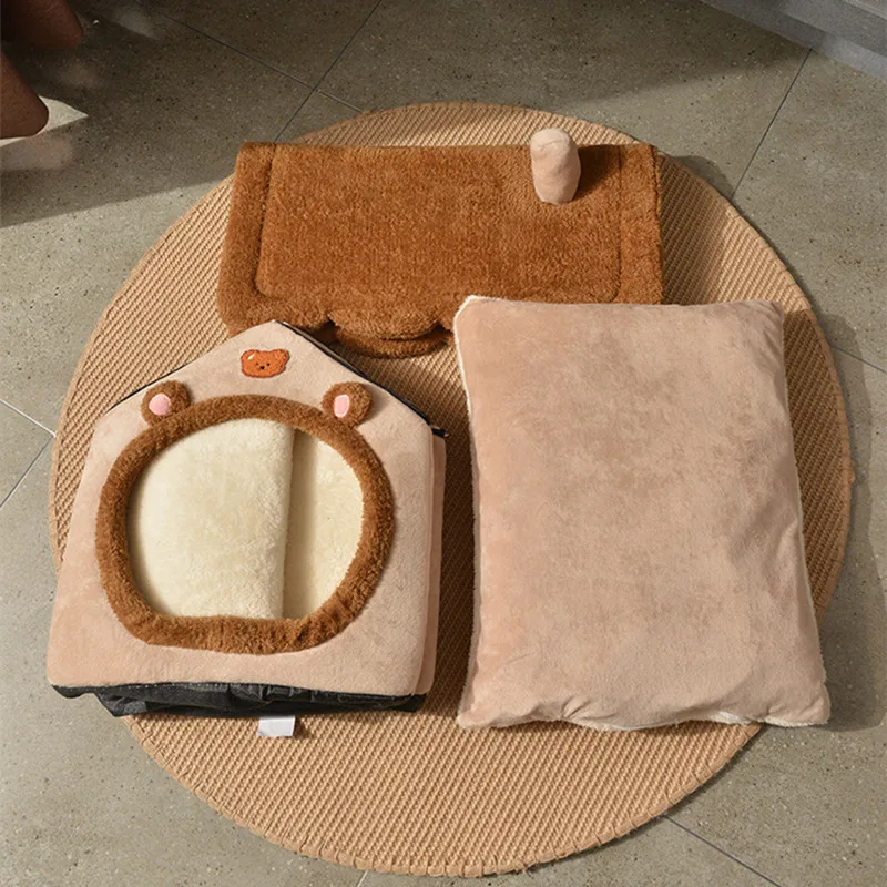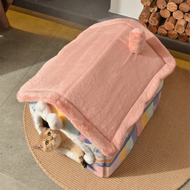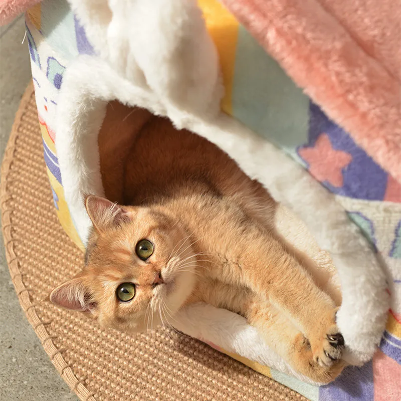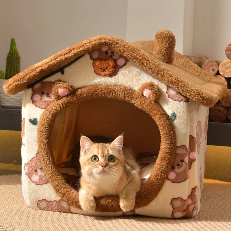 S : 43x36x34 см. Подходит для домашних животных весом менее 3,5 кг.M : 48x40x39 см. Подходит для домашних животных весом менее 7,5 кг.L : 53x43x46 см. Подходит для домашних животных весом менее 14 кг.Посылка включает в себя: 1 домик для домашних животных; 1 спальный коврикПримечание: