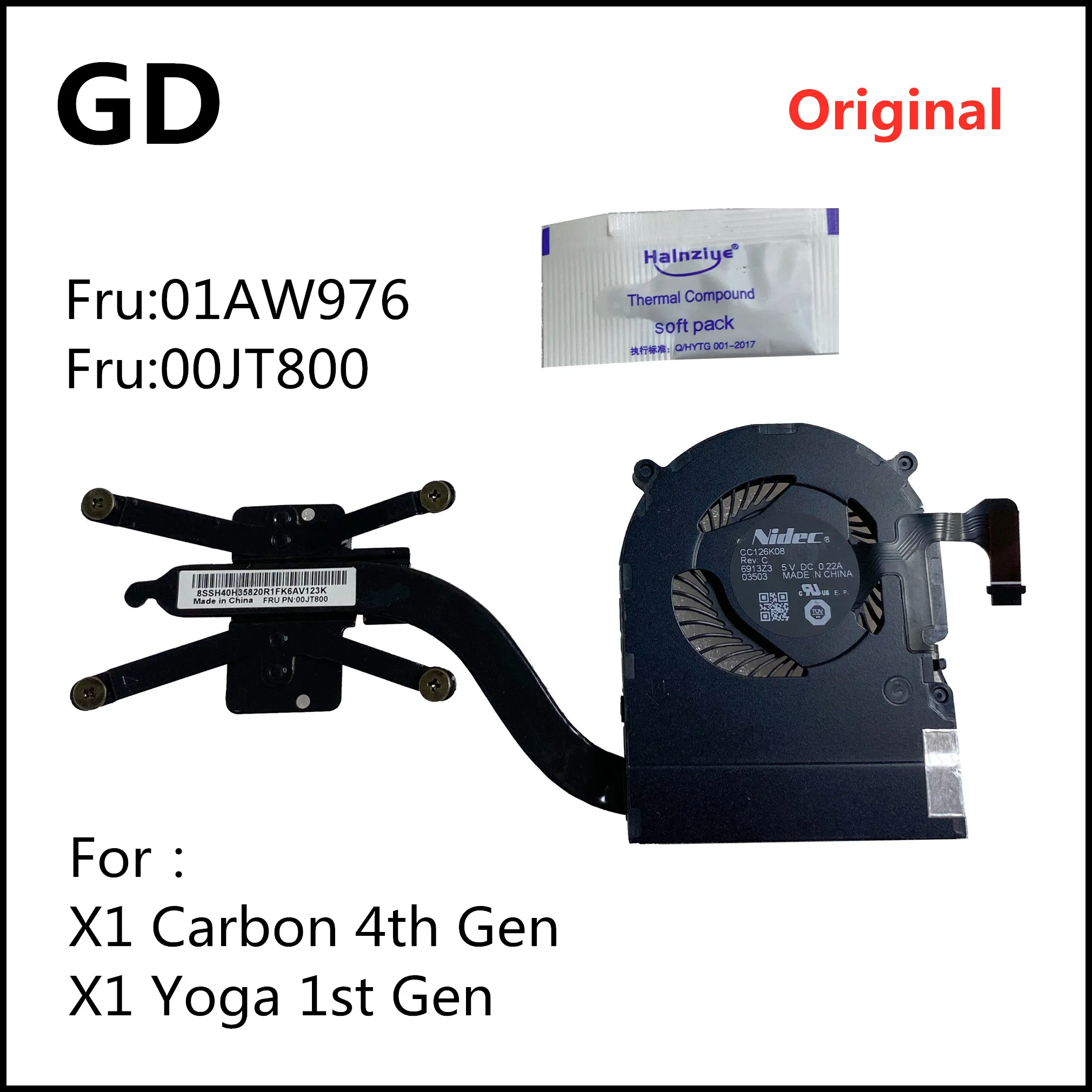 GD Оригинал для Lenovo ThinkPad X1 Carbon 4th Gen,X1 Yoga 1st Gen радиатор с вентилятором
