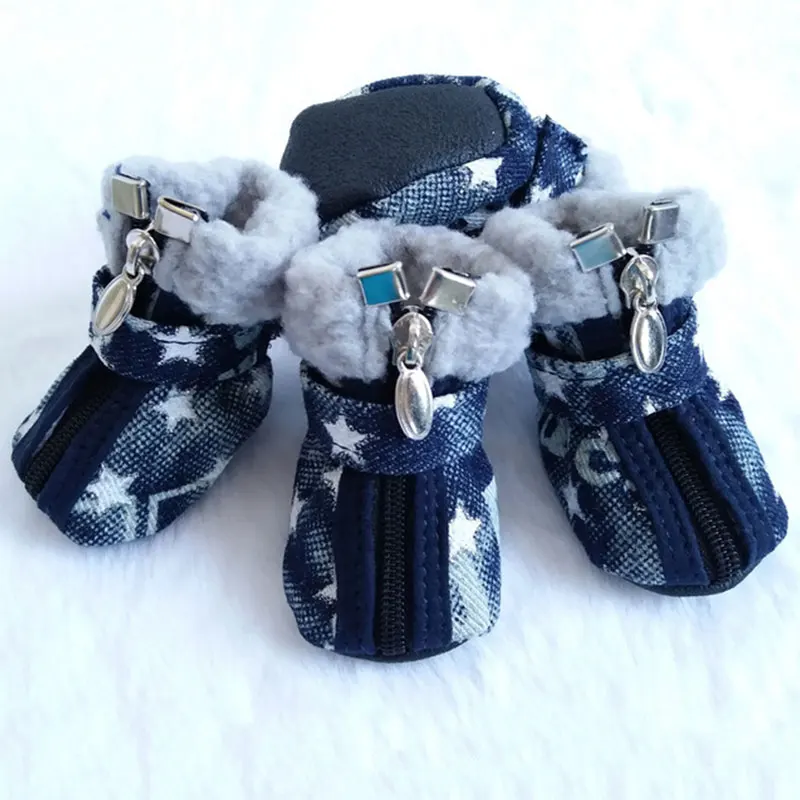 Наименование товара: 4 шт./компл.; Зимняя одежда для домашних животных; Нескользящая дышащая джинсовая обувь для собак