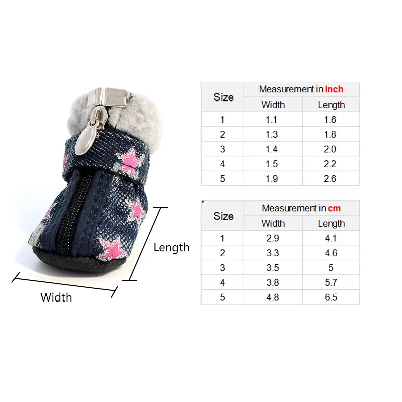 Упаковочный лист: зимняя одежда для домашних животных Нескользящая дышащая джинсовая обувь для собак x4шт