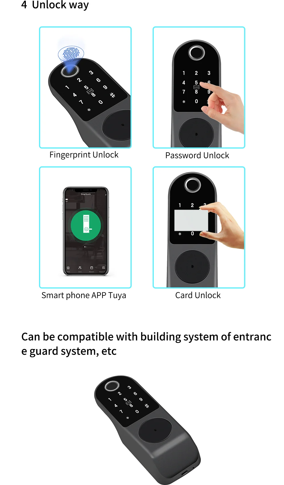 Приложение Bluetooth, отпечаток пальца, PIN-код, карта, механический ключ