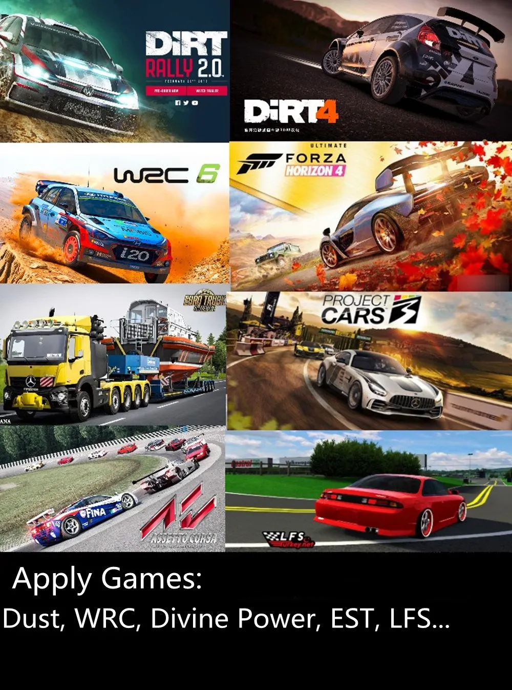 2. Gmae Подходит для: грязи, WRC, Assetto Corsa, LFS ,ETS