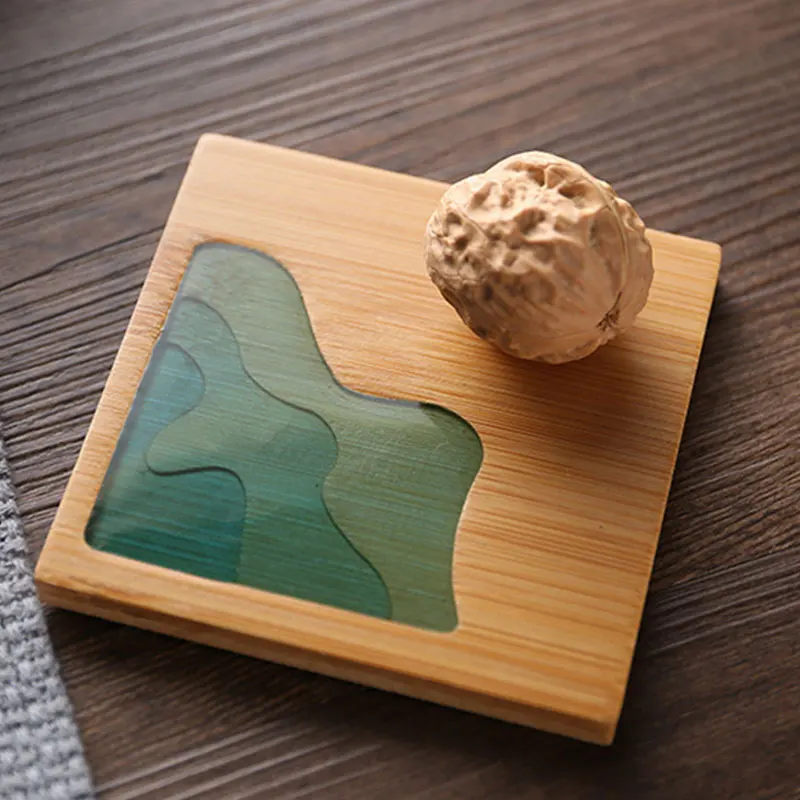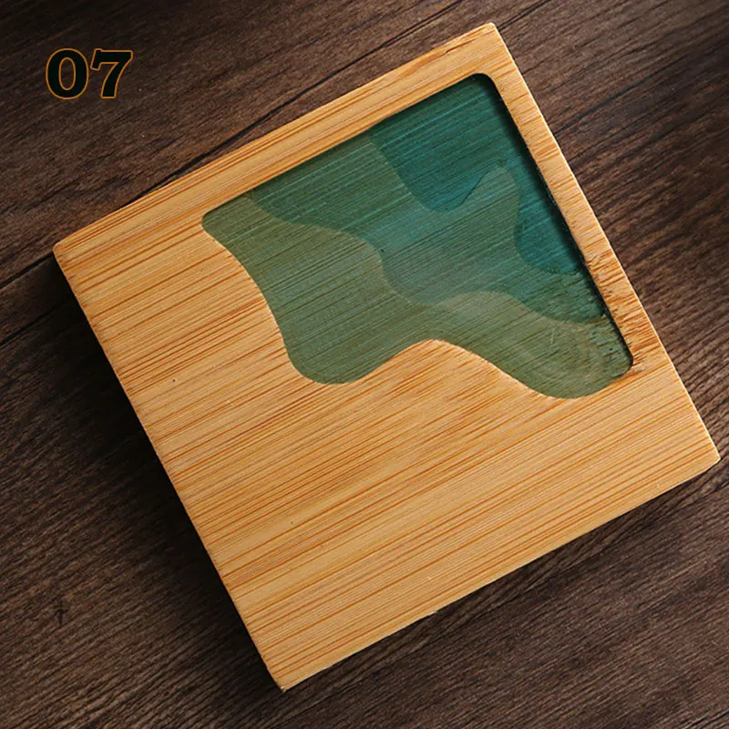 Современное искусство бамбуковые подставки Смола абстрактная чашка с пейзажем держатель Нескользящая подставка для кофейных чашек теплоизоляция Tearoom декор стола