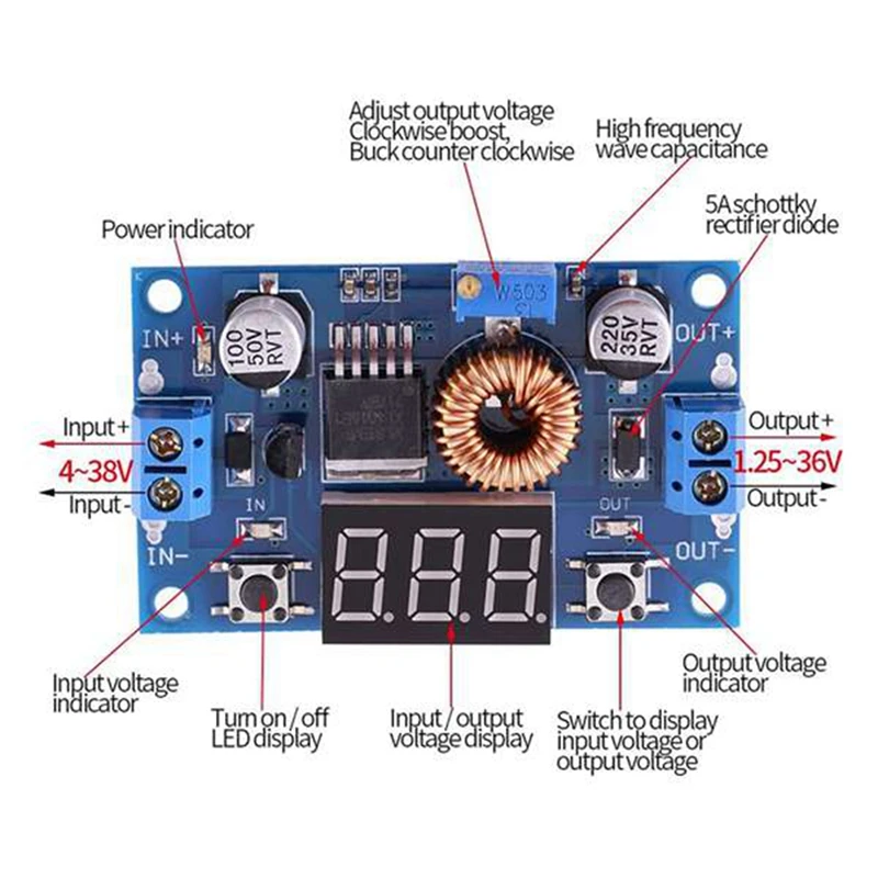 1 шт. 5А Высокая мощность XL4015 75 Вт DC-DC Регулируемый понижающий модуль с вольтметром