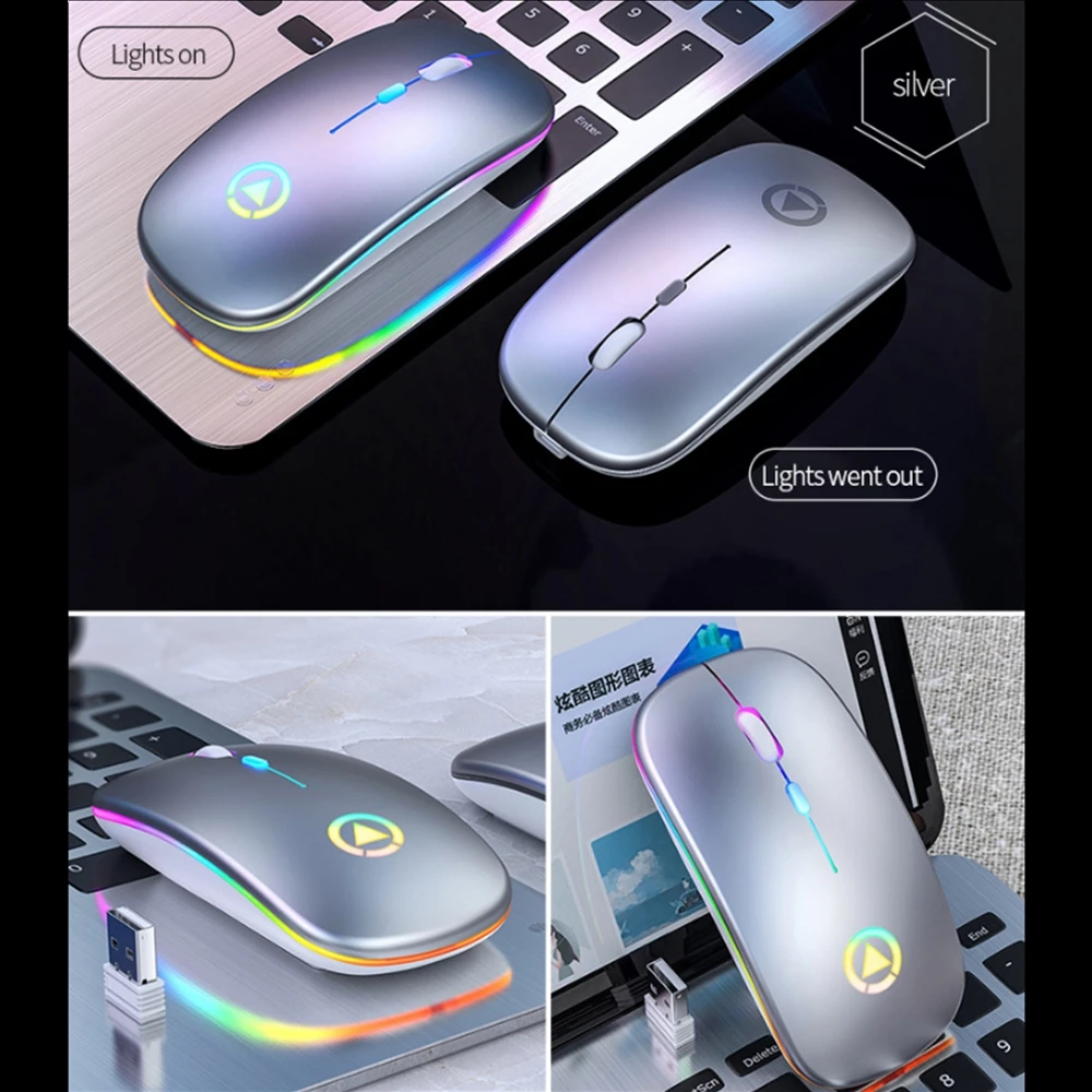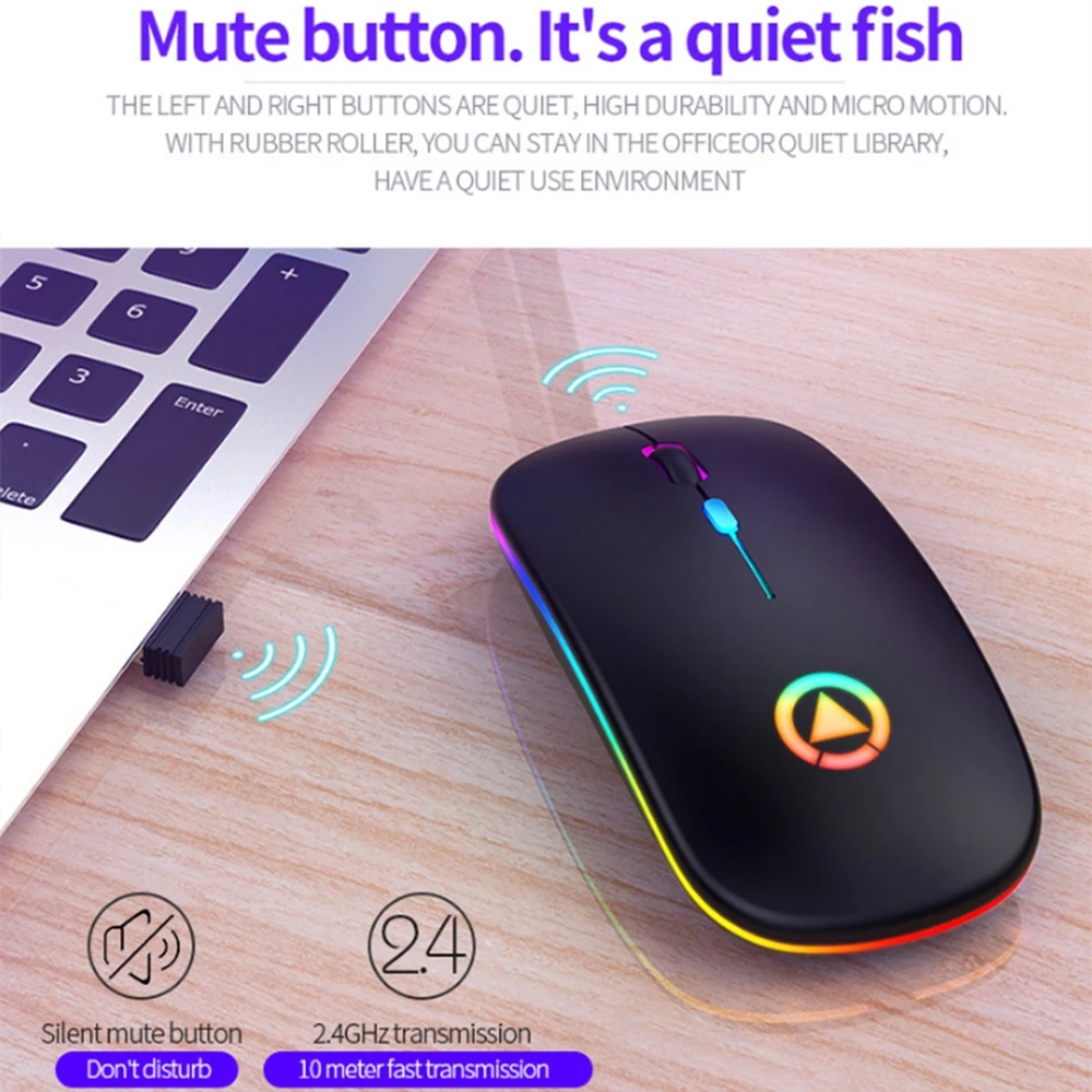2,4 GHz Красочные Ультра тонкие оптическая беспроводная проводная мышь Бесшумная USB мышь перезаряжаемая RGB для ПК ноутбука компьютера офиса дома работы