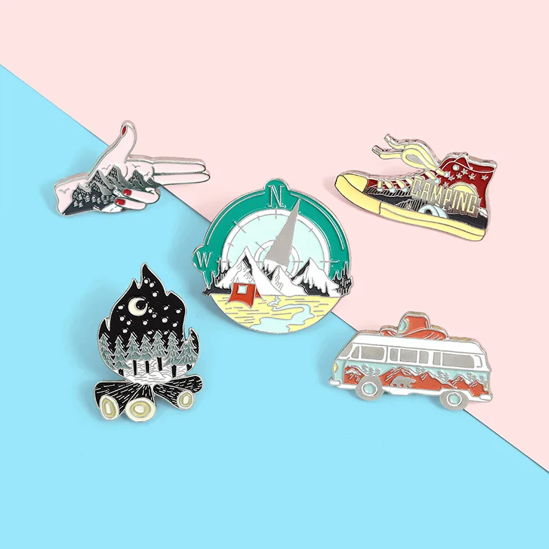 Продукт:Кемпинг жизни эмаль контактный открытый компас холст обуви костра палатки дома на колесах мешочек для брошек Нагрудный значок
