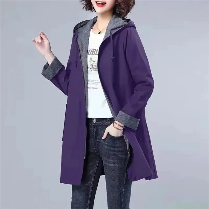 Ветровка размера плюс 7XL, женская верхняя одежда средней длины, новинка 2022, модное Свободное пальто с капюшоном, весенне-осеннее Женское пальто-Тренч