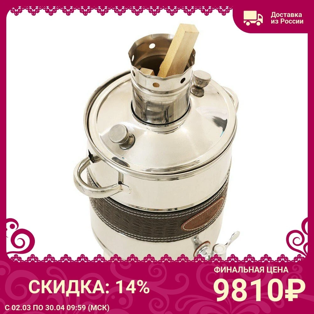 Недорогой и практичный самовар классической конструкции сделан из нержавеющей стали, лёгкий, прочный, станет незаменимым помощником на даче или в доме. Габариты: 47 x 32 см. Материал: Нержавеющая сталь. Вес нетто 2,7 кг