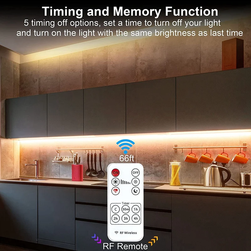Таймер и память Функция: 30 минут, 1/2/3/4 часов времени выключения, выбирайте за один раз, чтобы выключить свет в том случае, если вам нужно. Под светильник шкафа можно сохранить личные настройки, чтобы убедиться, что он имеет одинаковую яркость каждый раз, когда он активирован.
