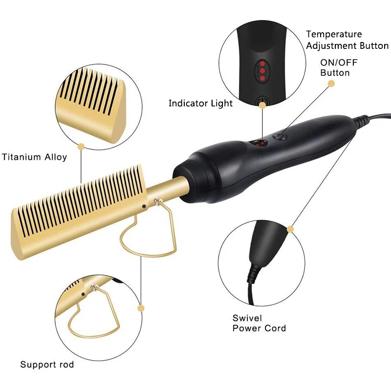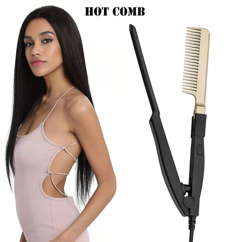 Медный цветной горячий гребень для влажных и сухих прямых волос, выпрямитель для волос с отрицательными ионами.