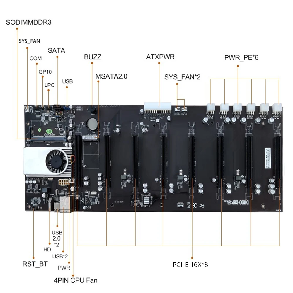 D1800-D8P-D3 материнская плата на борту J1800 CPU 8 PCI-E 16X Слоты гигабитная Сеть USB2.0 + HD порты Поддержка 8 видеокарт