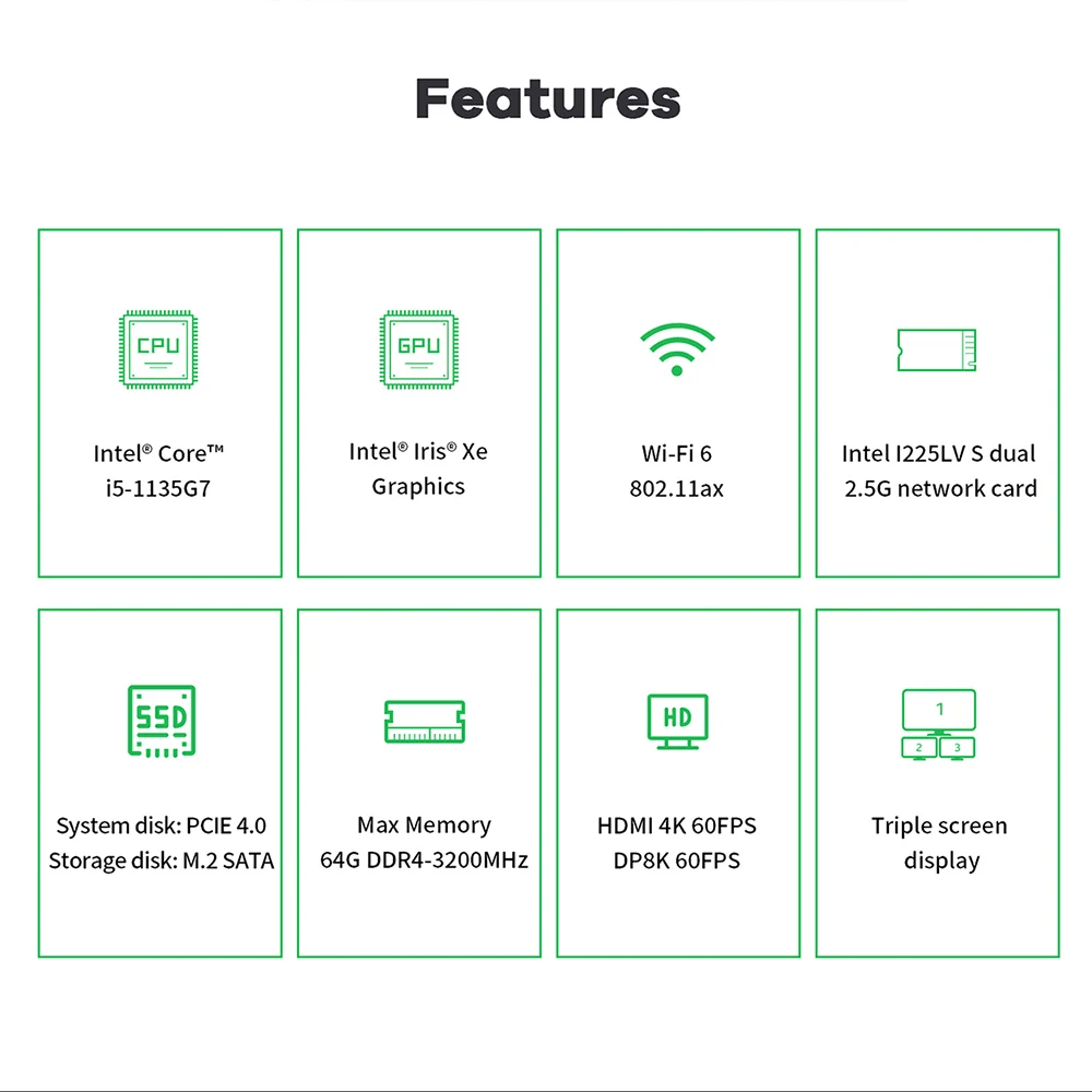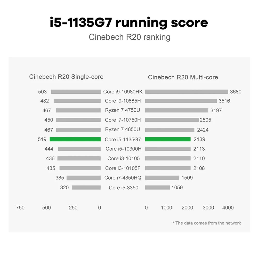 Intel 11-го поколения®I5-1135G7, 2,4 ГГц, Turbo 4,2 ГГц (4C/8T) поддерживает 8 Мб Смарт Кэш