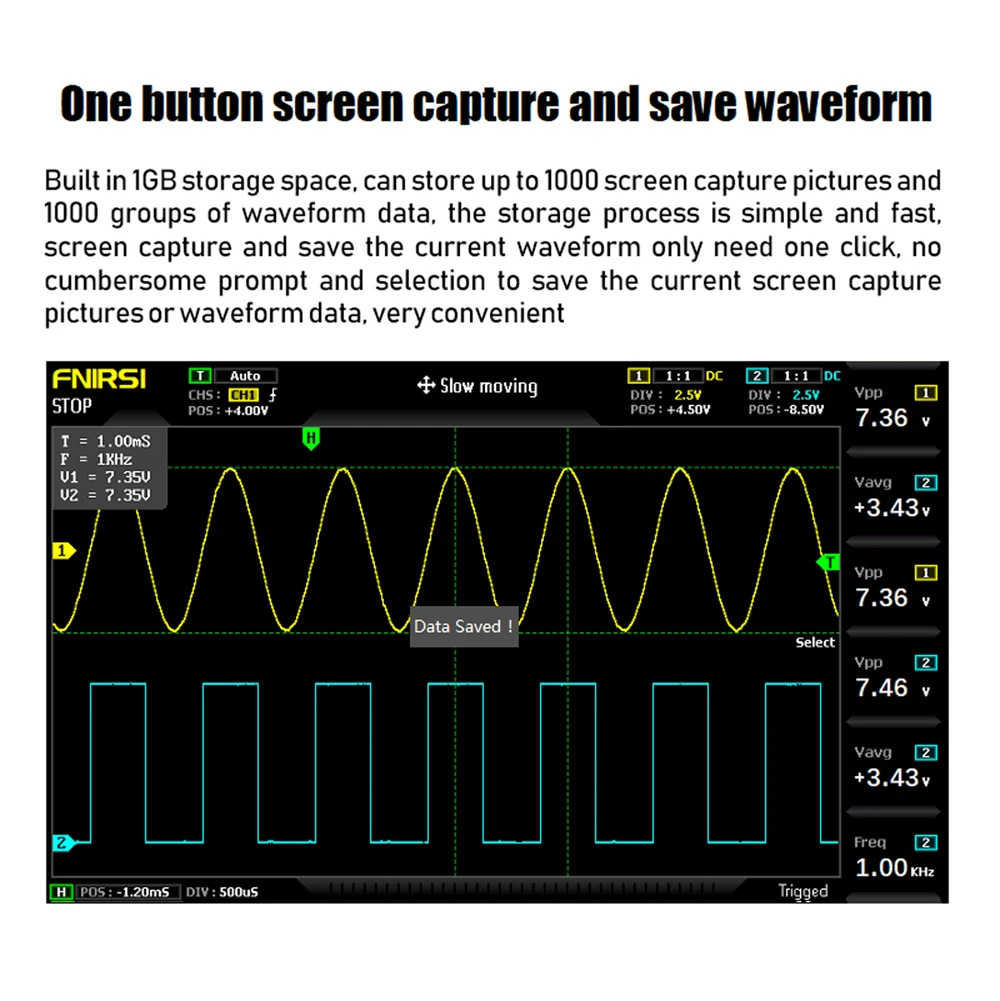 Полная функция запуска (одиночная, нормальная, автоматическая), и в любое время дисплей формы волны (Функция паузы) является fro-zen.