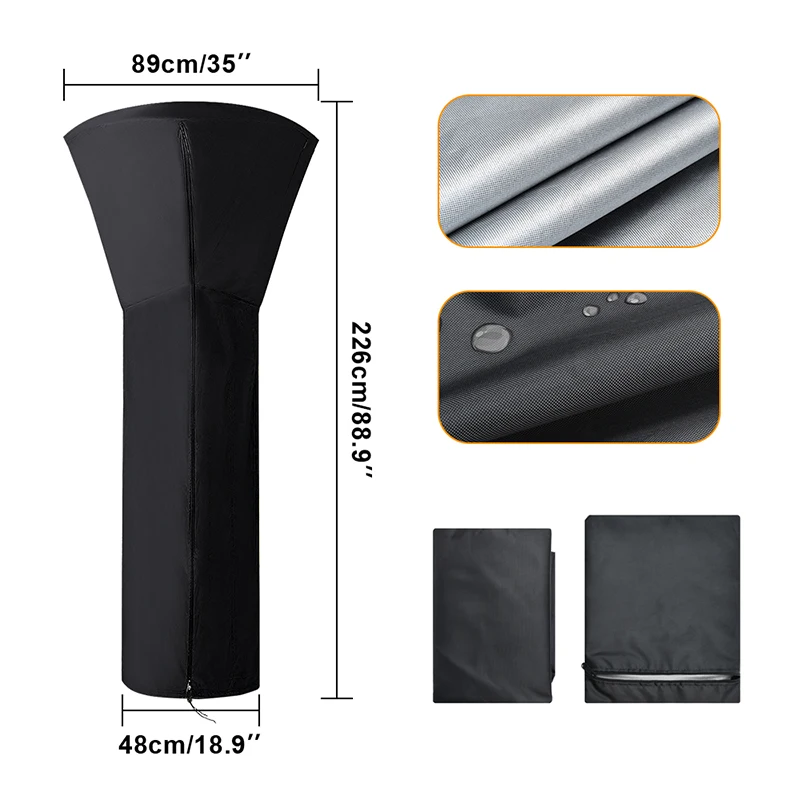 5. Обратите внимание: наш чехол Полный размер: H89 "xD33" xB19 "in /226x85x48 см, подходит для большинства круглых нагревателей для внутреннего дворика. Перед покупкой тщательно измерьте размер вашего обогревателя.