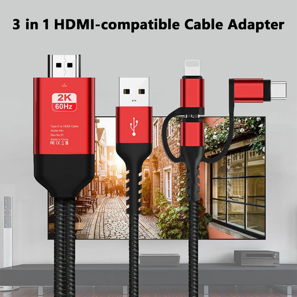 3 в 1 мобильный телефон с HDMI-совместимым адаптером. Поддерживает зеркальное отображение фильмов, фотографий, игр с вашего Micro USB/Type C/Apple мобильный телефон, например, для iPhone/Sumsung/Huawei и других устройств на hdmi-оборудованный телевизор, монитор, проектор. Этот кабель-адаптер 3 в 1 HD может свободно переключаться для ваших устройств ввода.!