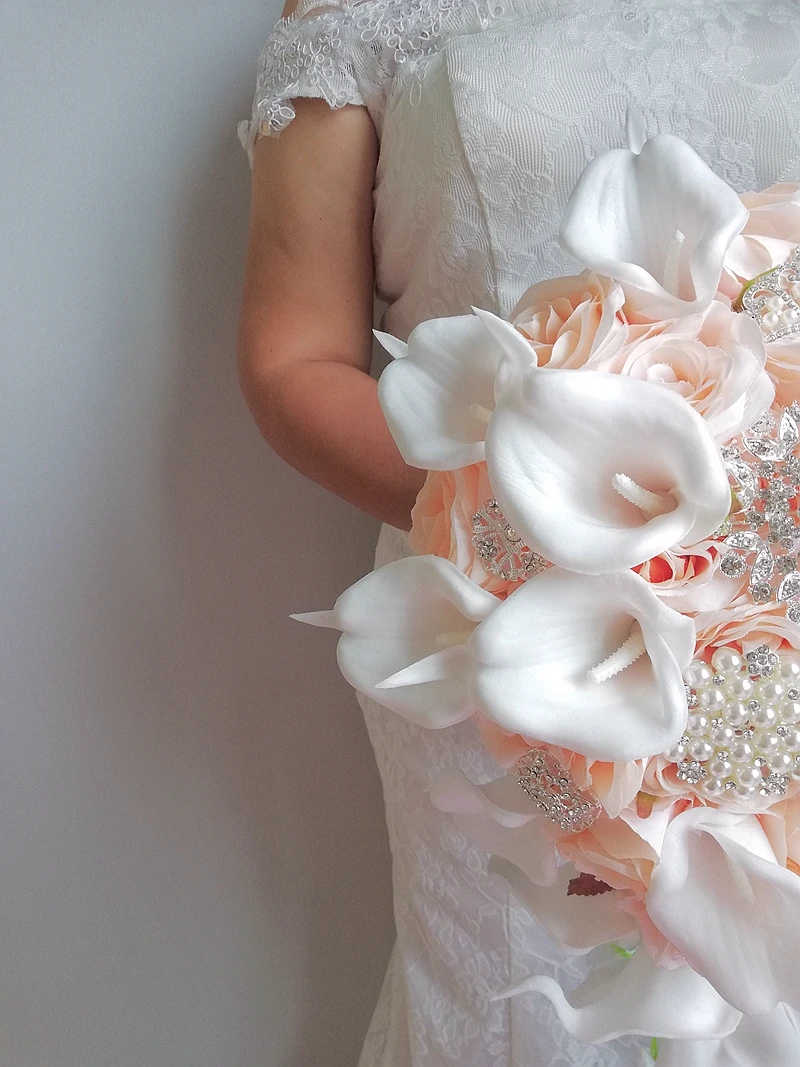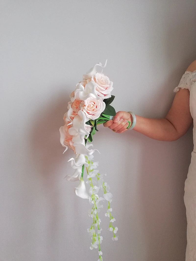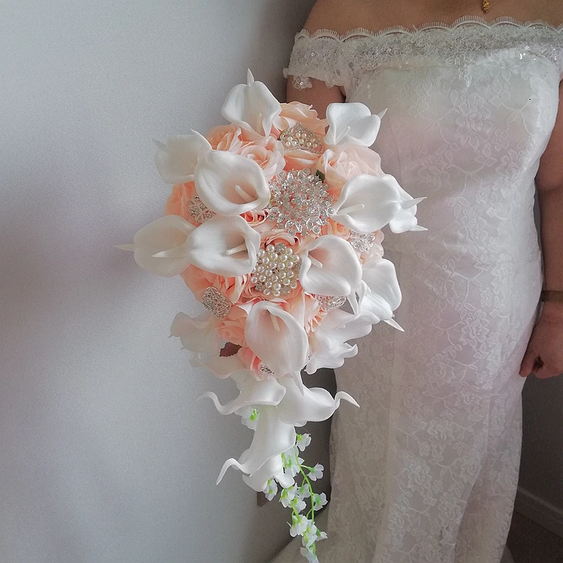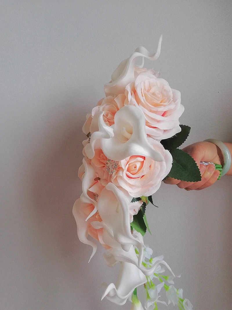 Кремовый розовый букет с водопадом розы свадебный белый букет из каллы и лилии искусственный цветок Ramos De Novia Elegantes