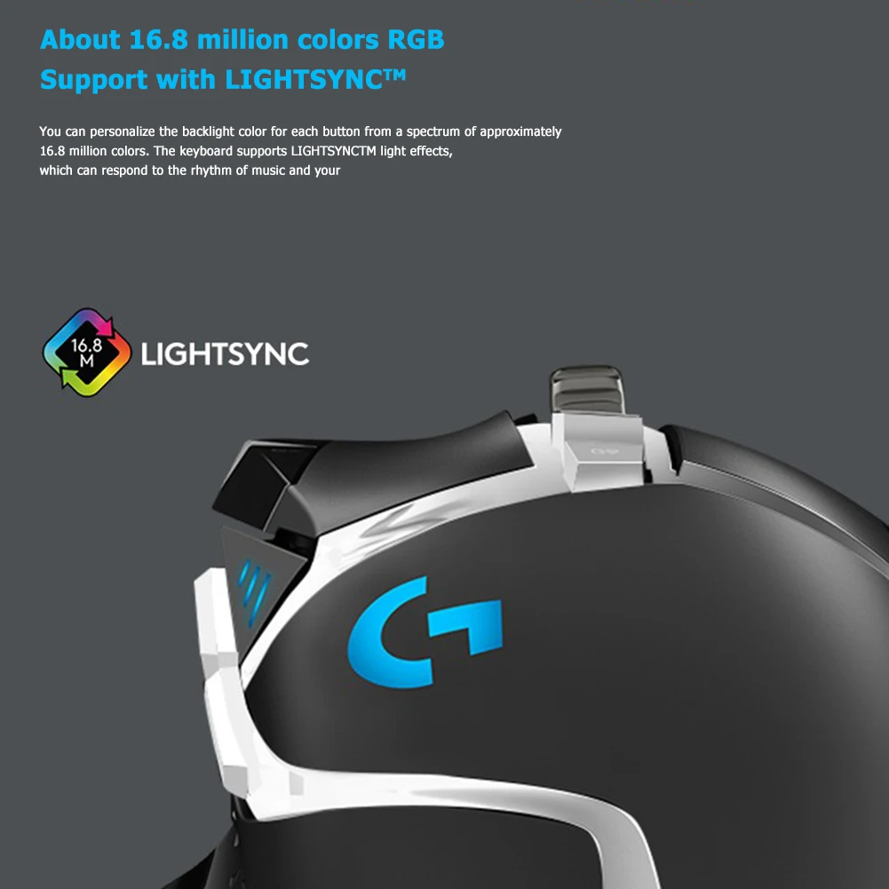 Программируемая технология RGB Lightsync: Настройка освещения от почти 16,8 миллионов цветов, чтобы соответствовать цветам вашей команды, заниматься спортом самостоятельно или синхронизировать цвета с другой передачей Logitech G