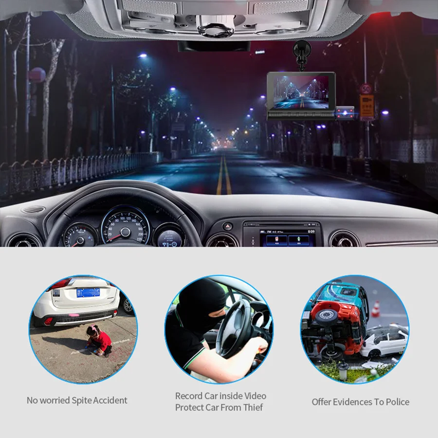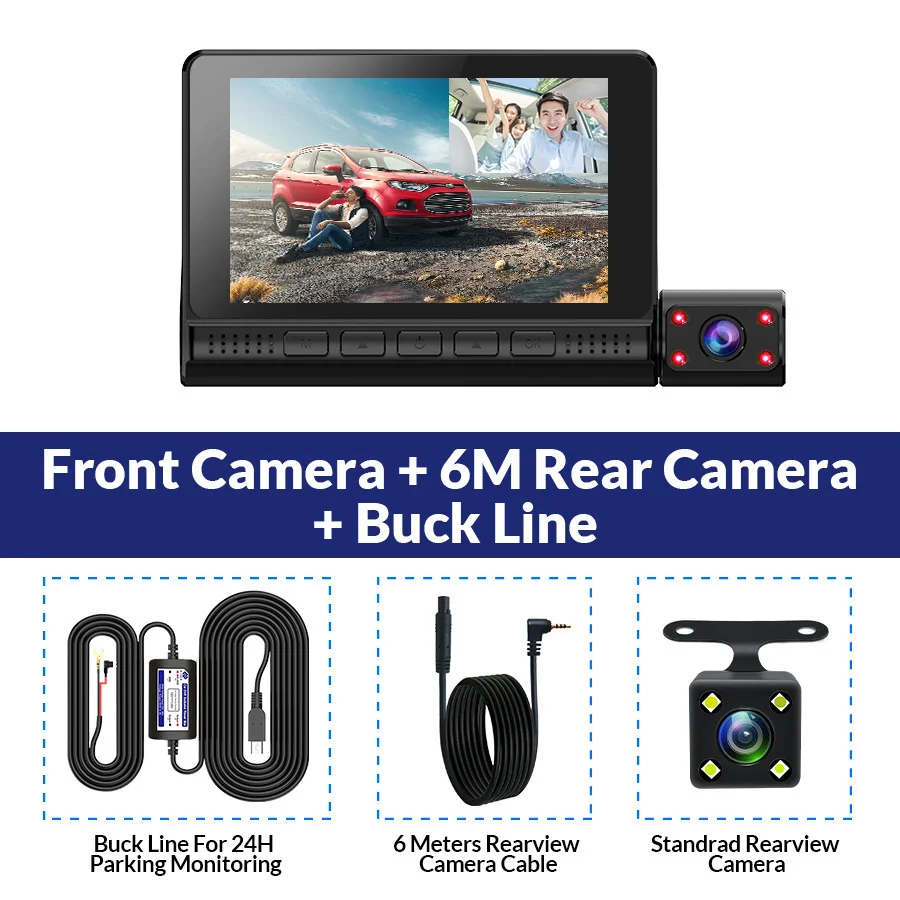 E-ACE 1080P Car DVR Night Vision B41 Car DVR 3 Cameras Lens Car Dash Cam 4 Inch Touch Screen FHD G-Sensor 24H Parking Monitoring