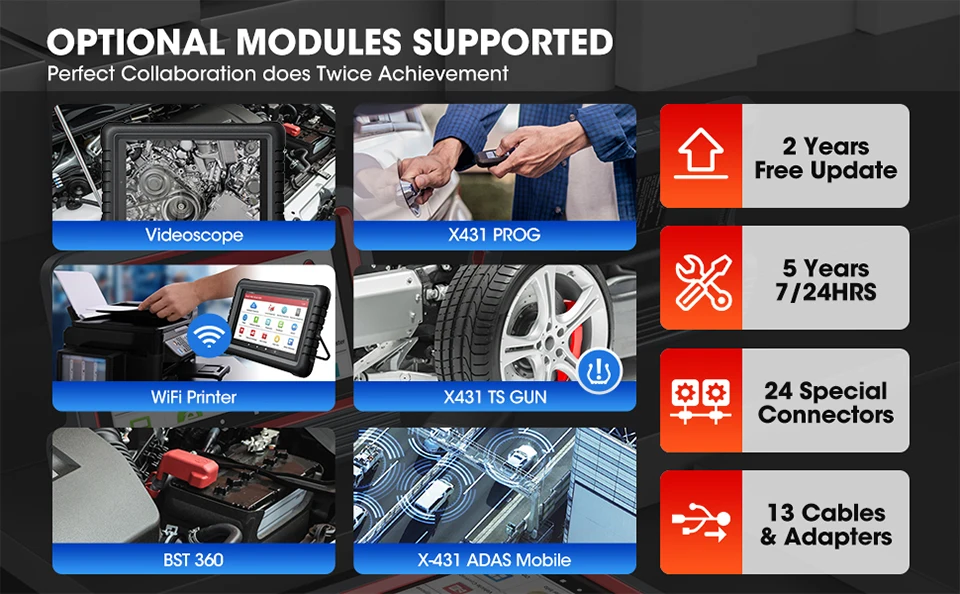 ✅【Поддержка Wifi принтер/Видеоскоп/TSGUN/ X431 PRO G дополнительные функции 】✔≤Videoscop: Проверьте невидимые части двигателя, системы топливного бака и т. Д.✔️ X431 TSGUN: активируйте все датчики, TPMS relearn, датчики запуска программы✔️ X431 PROG: функции IMMO для VAG Group выше 3,5✔️ X431 принтер: Распечатать диагностические данные/отчеты.