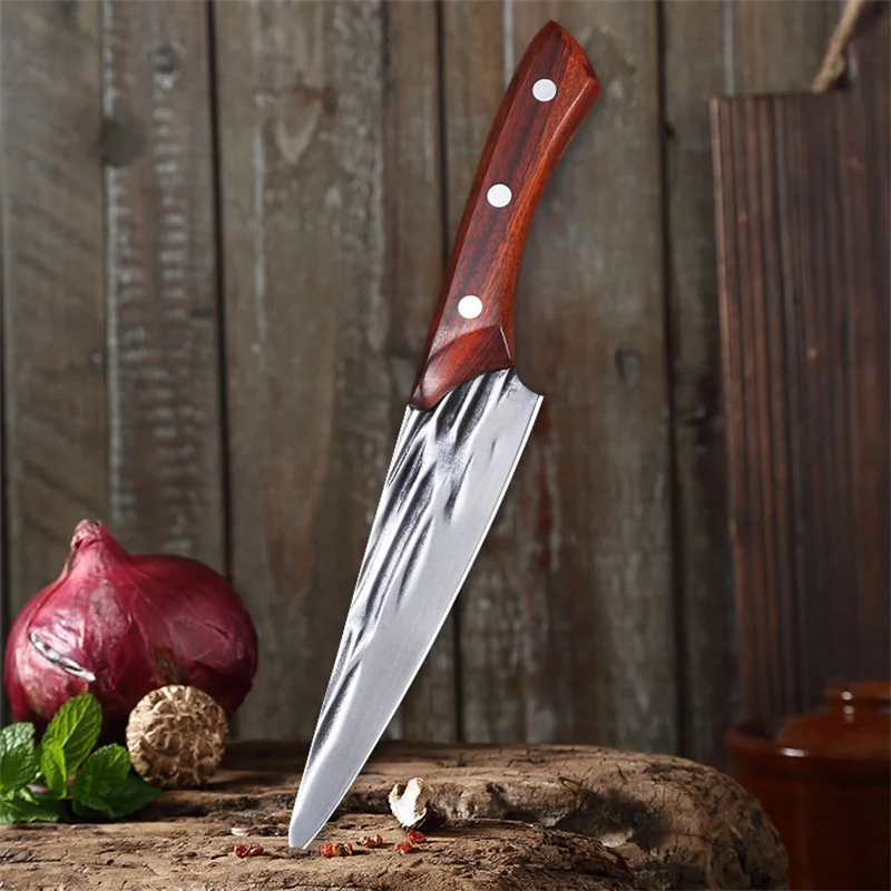 Это превосходное лезвие ножа сделано из высокоуглеродистой кованой нержавеющей стали, которая поставляется с твердостью 58 + rockwell, долговечным краем и отличной твердостью. Лезвие ножа тщательно заточено вручную equi, сохраняя боковую сторону equi, 13-15 ° идеально между ультра-тонким разрезом и максимальной устойчивостью для гладкого разреза.