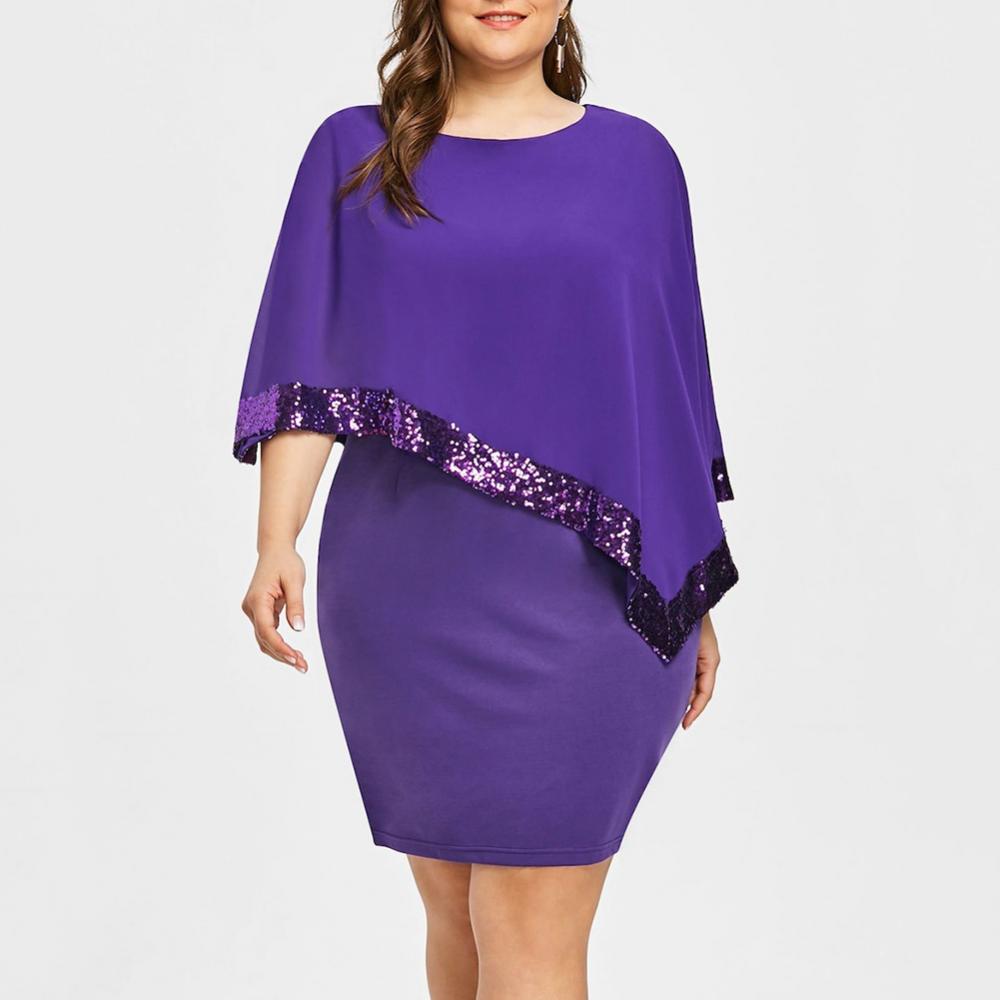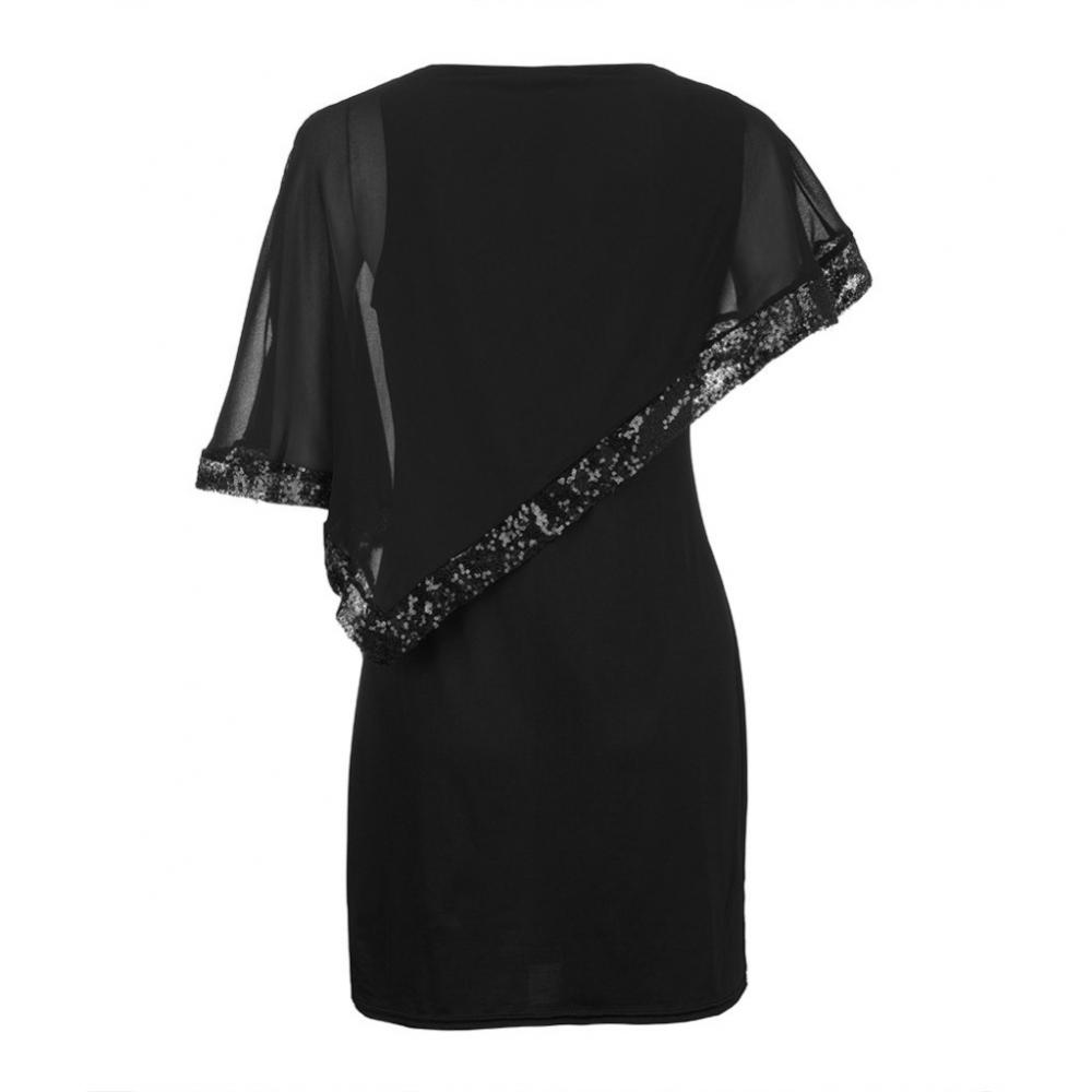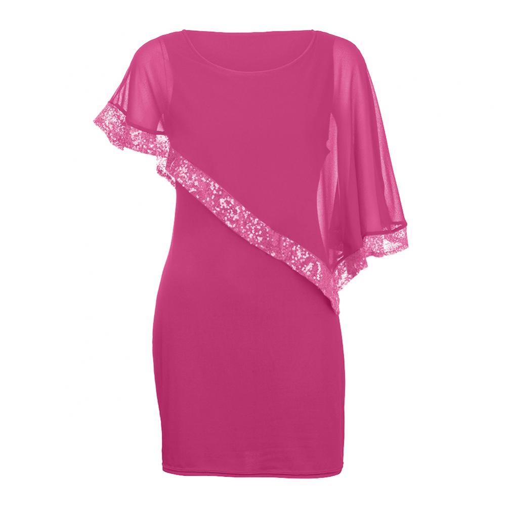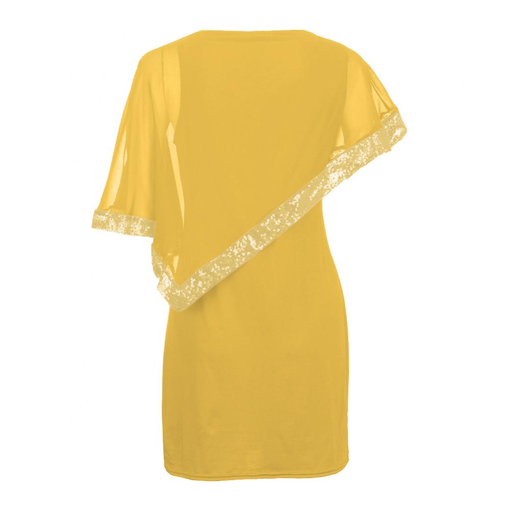 Женское однотонное асимметричное платье с круглым вырезом и блестками