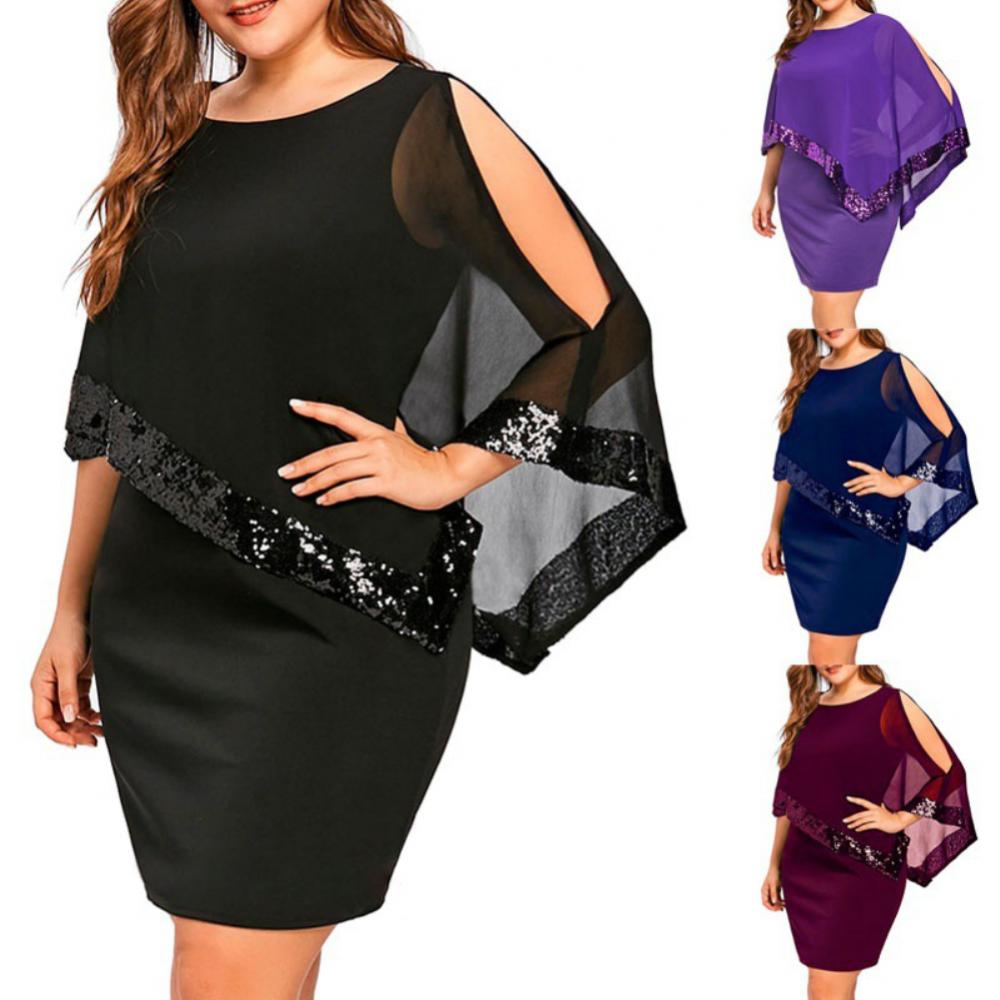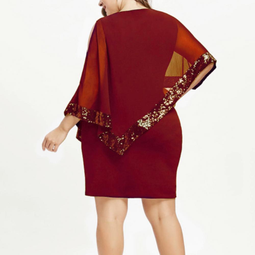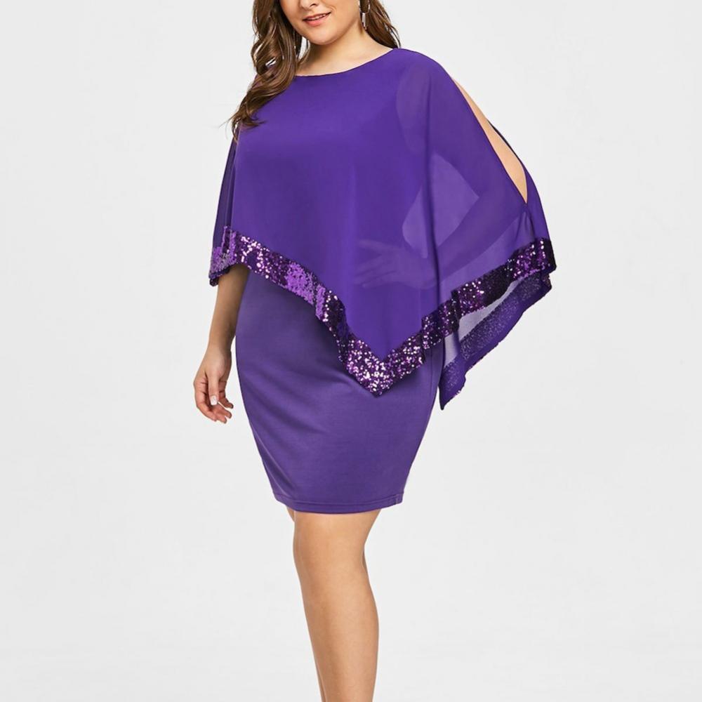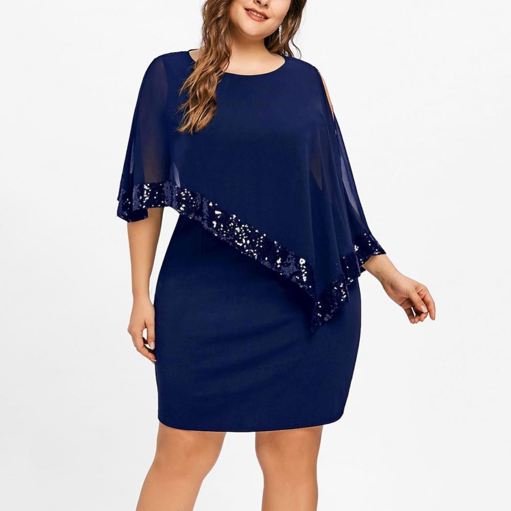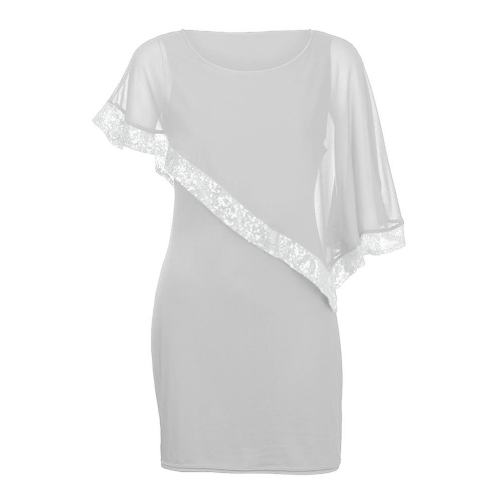 Женское однотонное асимметричное платье с круглым вырезом и блестками