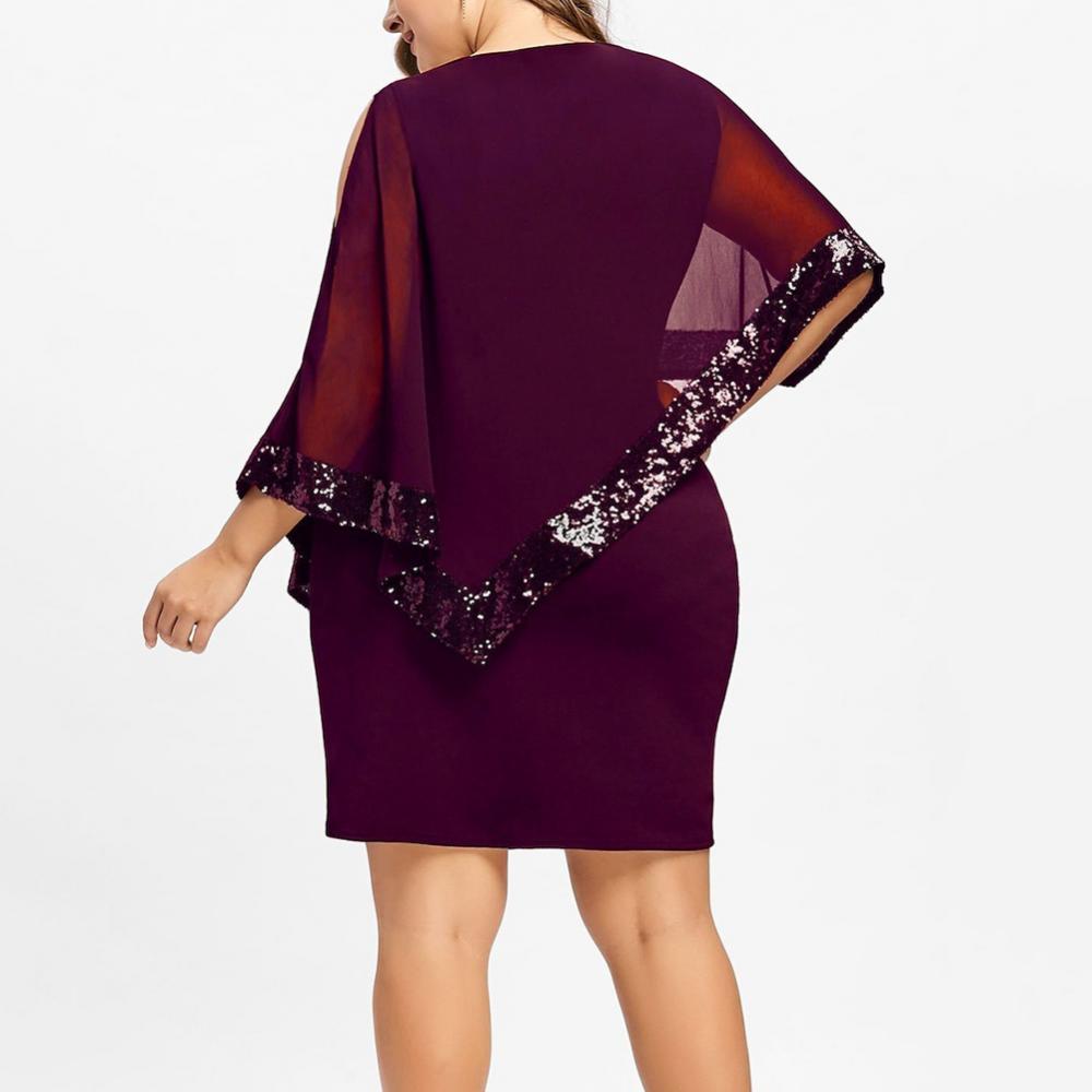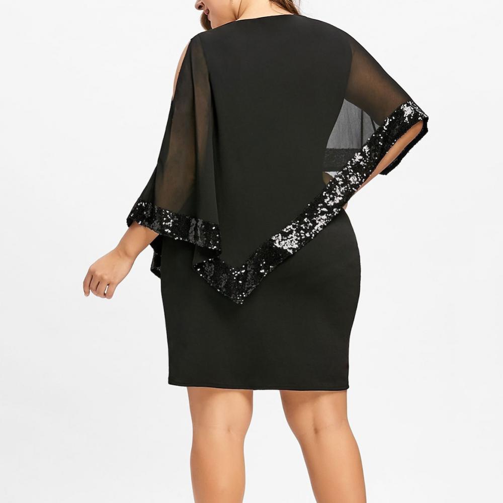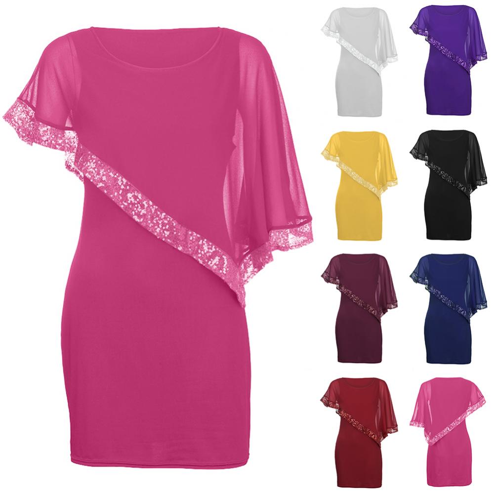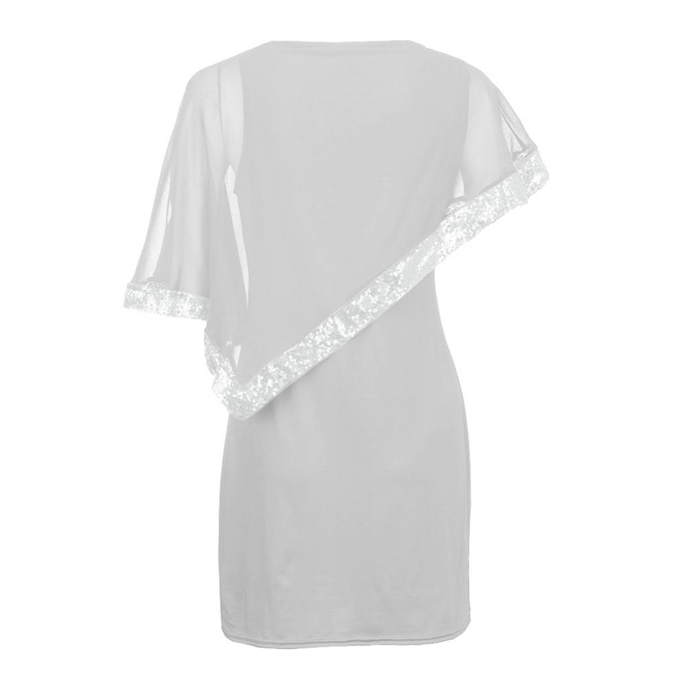 Женское однотонное асимметричное платье с круглым вырезом и блестками