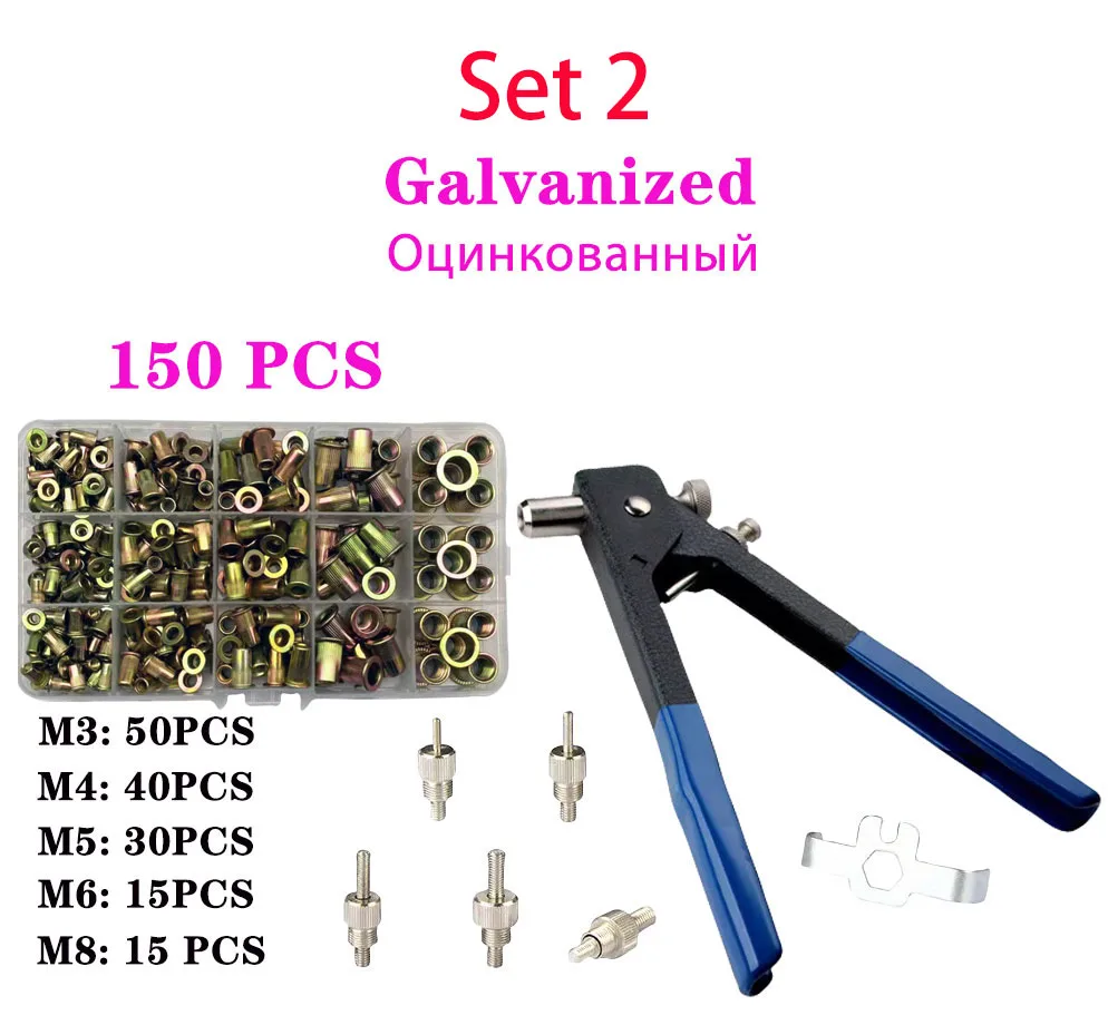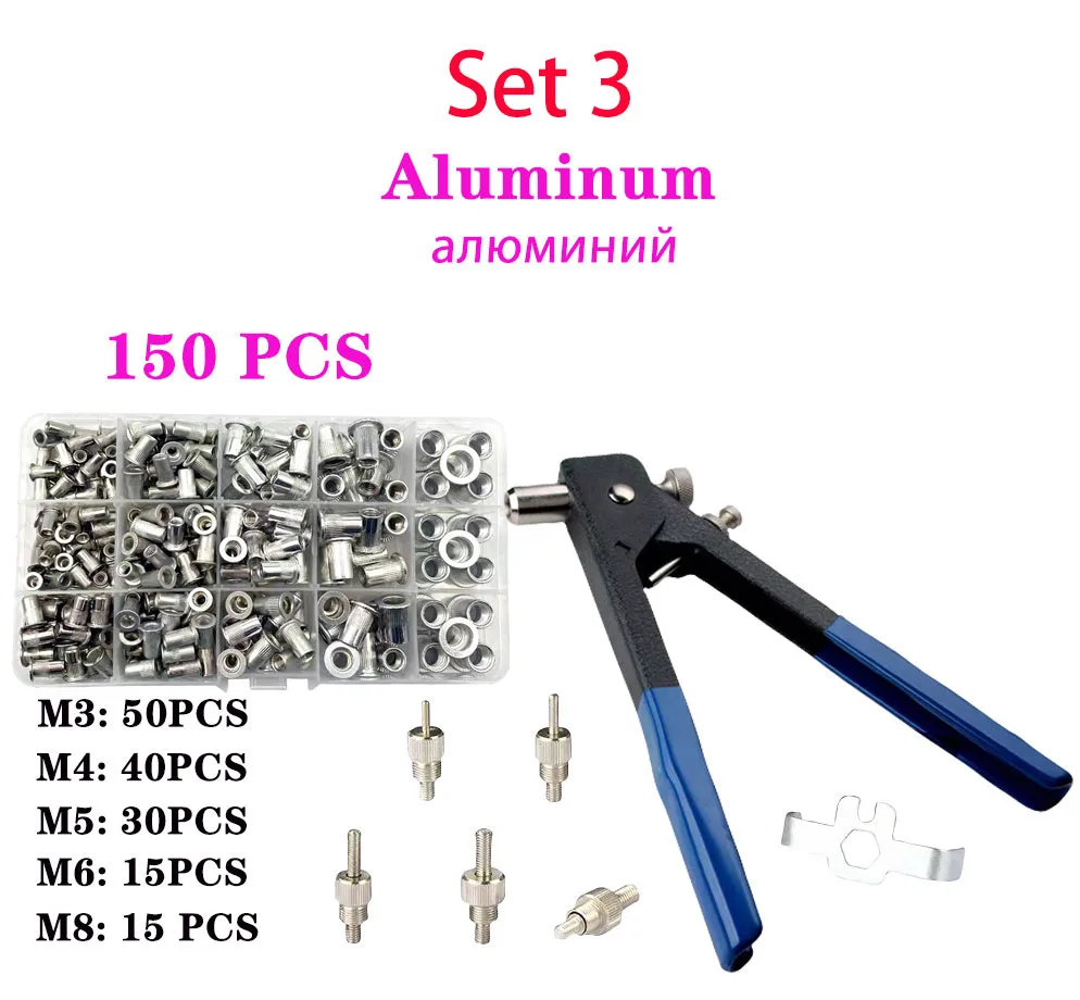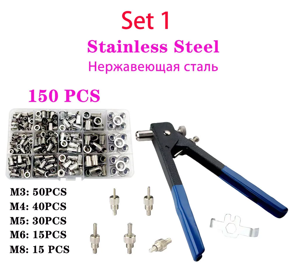 150 шт. заклепки гайка резьба вставка из нержавеющей стали заклепки гайка с резьбой фиксатор механические инструменты зажимной рычаг заклепки гайка набор