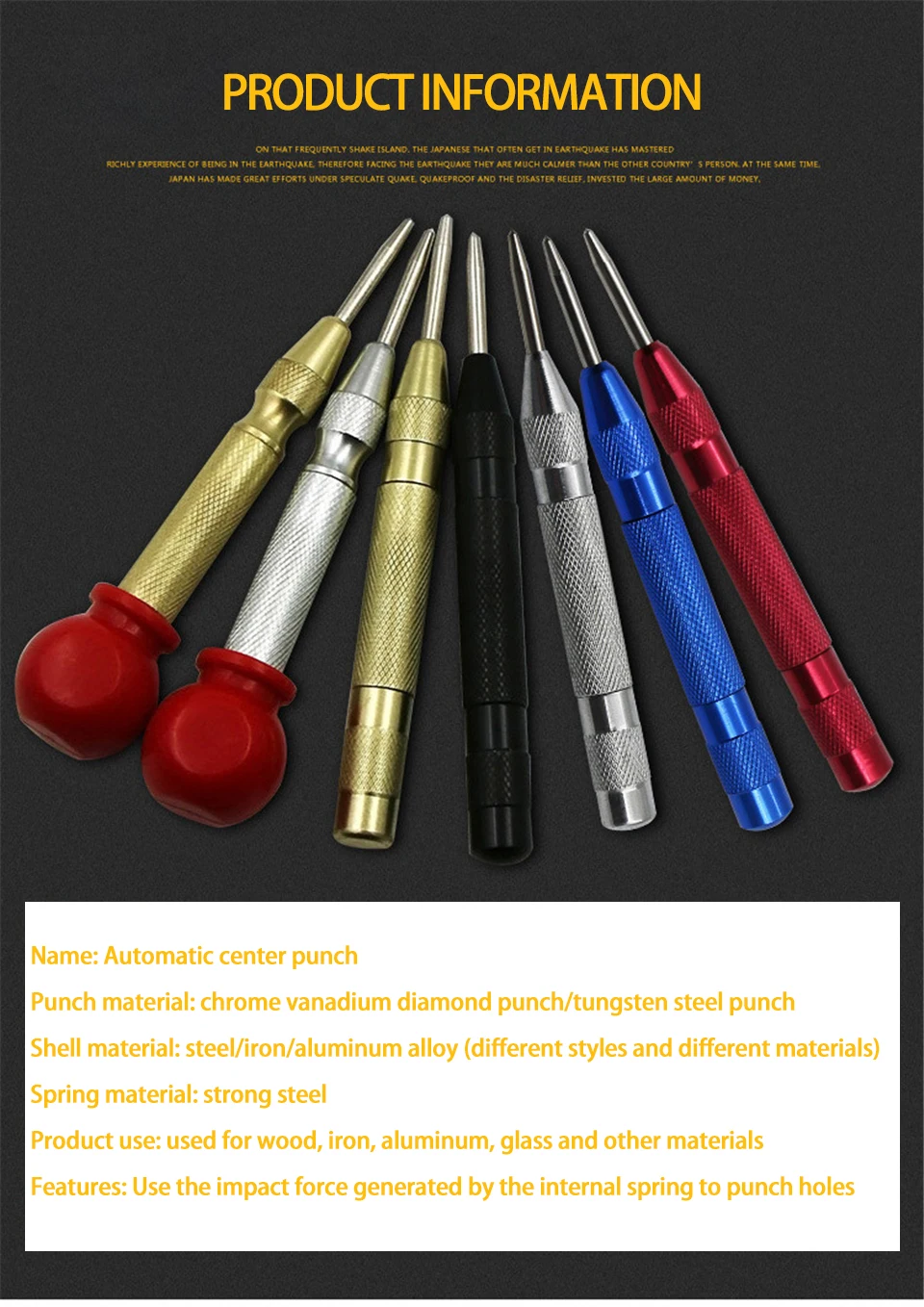 2. Стальной центральный перфоратор крепкий и не легко деформируется, а противоскользящее зерно удобно держать и контролировать удар, подходит для обычной стальной доски, деревянной доски, железная доска и другие материалы.