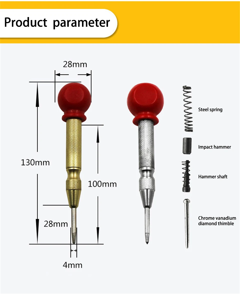 5. Этот центральный перфоратор прост в использовании без других инструментов, вам просто нужно выровнять точку позиционирования и нажать на руку, чтобы ударить. После того, как удар прижат обратно к небольшой части стержня, сильная пружина будет энергично выскакивать удар, производя яму для точки.
