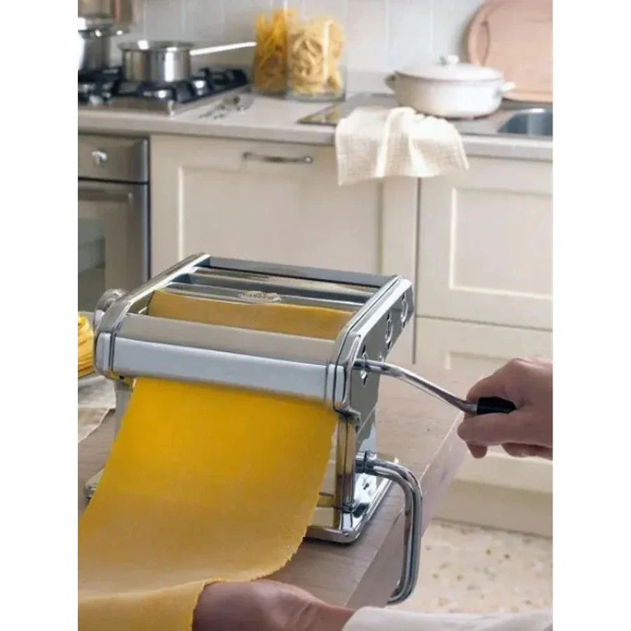 Lapshereska will help you make perfect noodles or roll the dough. The silver metal case is attached to the surface of the table with a special screw clamp. The mechanical mechanism allows you to do without connecting electricity, so lapsherezku can be used anywhere. The device can be washed. A removable part for slicing noodles contributes to the comfortable use of this kitchen device. This model allows you to choose the thickness of the rolling test from 9 installations. The width of the plate is 15 cm. This is enough for making dumplings or small pies. Part for slicing noodles is also equipped with a mechanical drive. Two slicing modes allow you to choose the width of the finished Noodle: 2mm or 6.6mm. In the kit there is a detailed instruction manual. 9 modes thickness rolling dough slicing block for 2 kinds of noodle clamp to mount to the table slicing noodle 2mm and 6.6mm roller