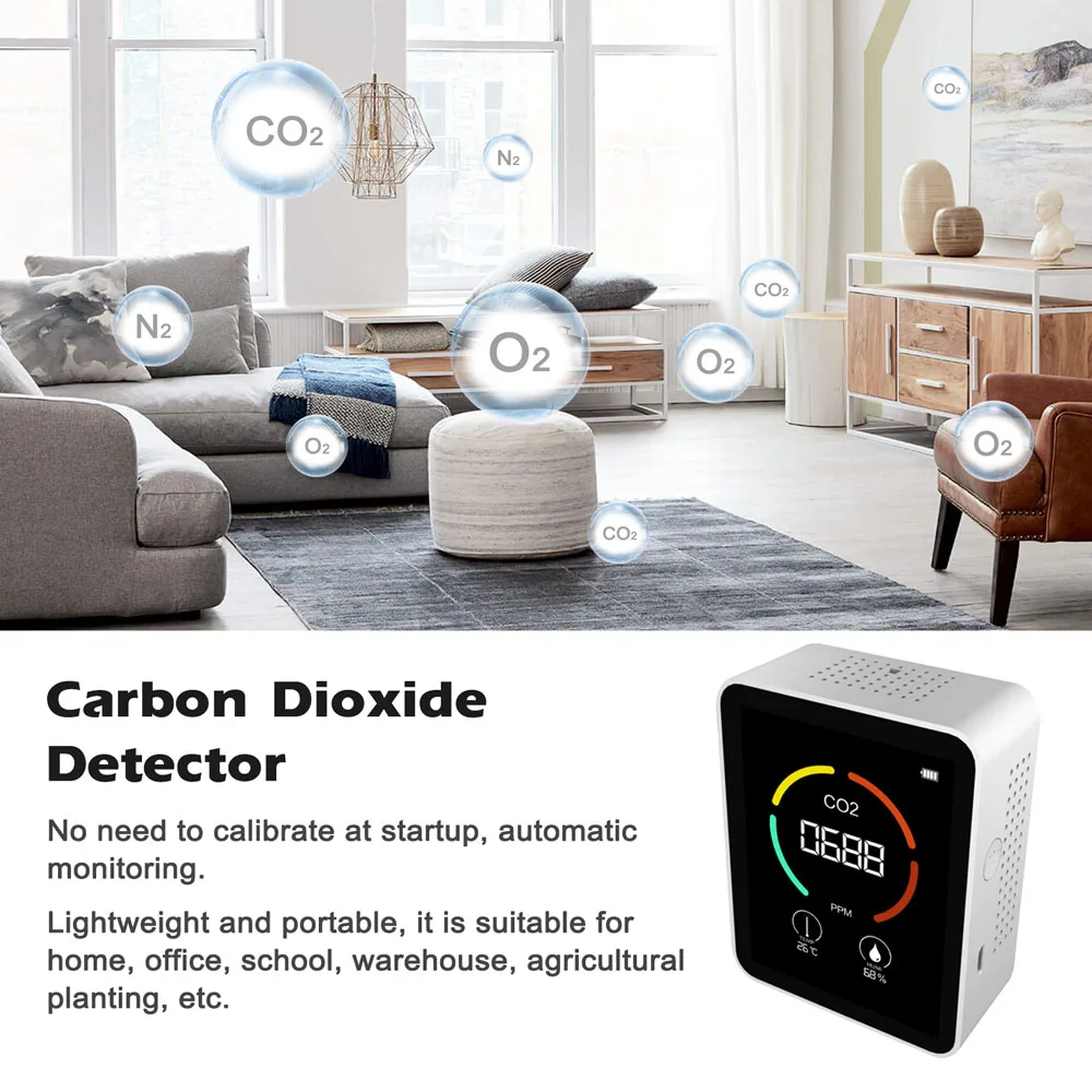 Lightweight and portable, it is suitable for home, office, school, warehouse, agricultural planting, etc. No need to calibrate at startup, automatic monitoring.