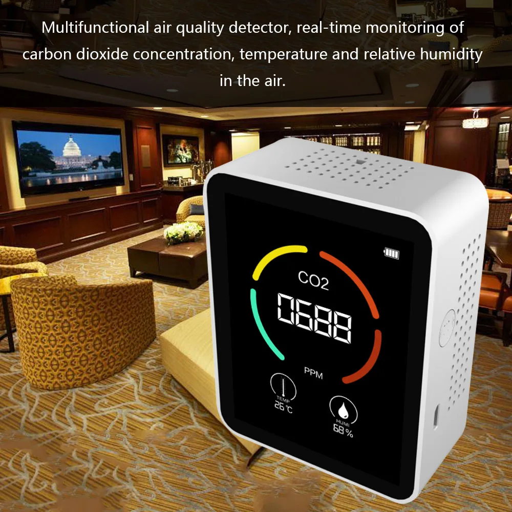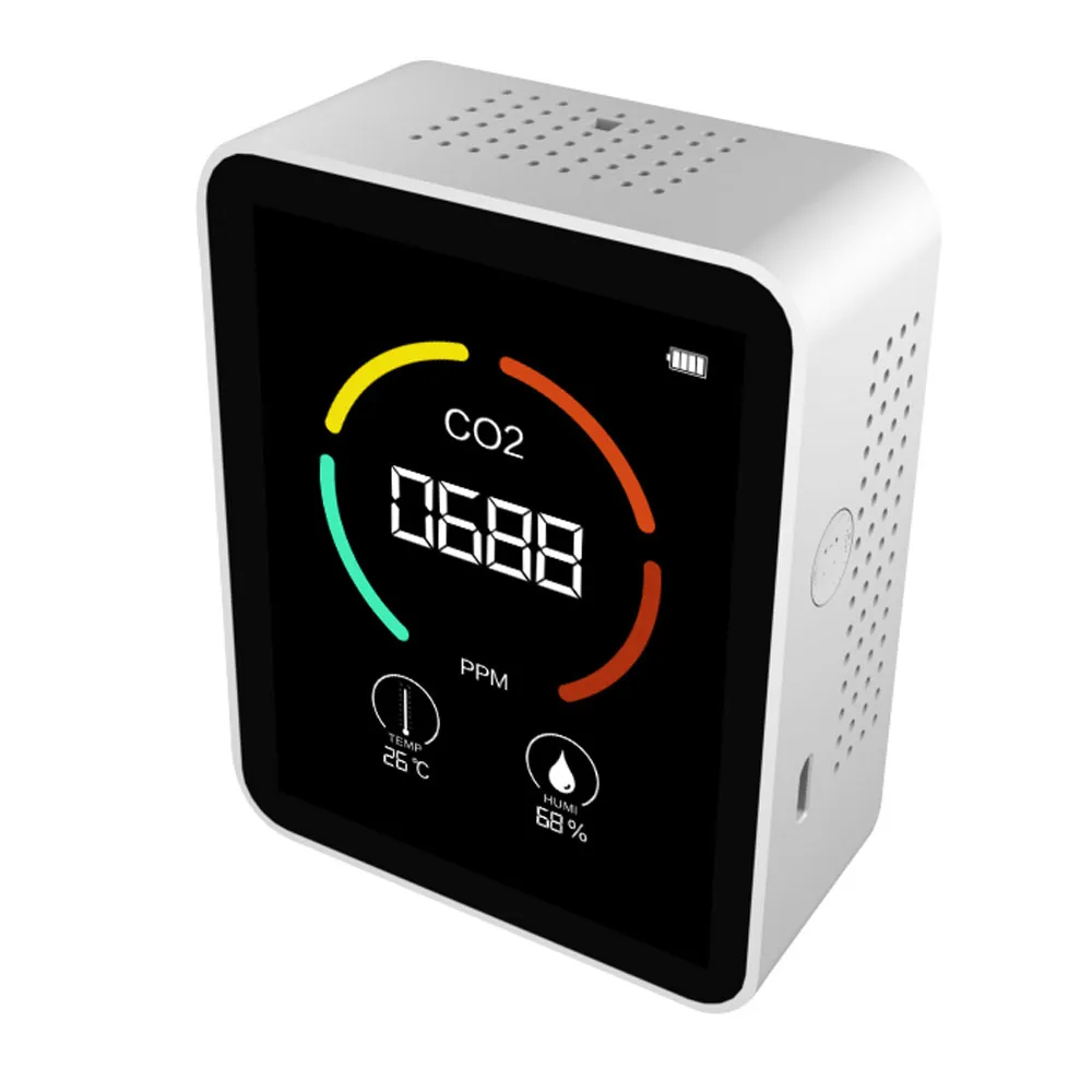 Multifunctional air quality detector, real-time monitoring of carbon dioxide concentration, temperature and relative humidity in the air.