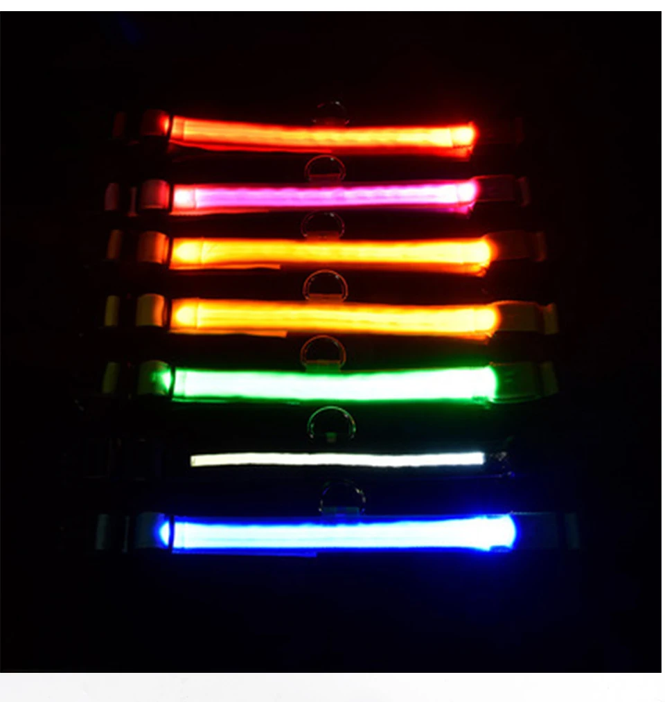 USB Charging Chien Led Dog Collar Perro Anti-Lost/Avoid Car Accident Luminoso Safety Personalizado Button Battery LED Pet Supply