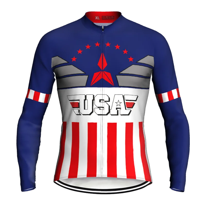 Велоспорт США Джерси велосипед MTB Pro командная одежда куртка дышащий спортивный топ длинная рубашка полиэстер полная молния американский стиль открытый