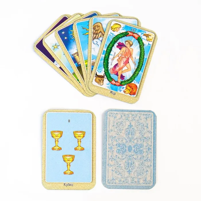Карты Таро "Ридер-вэйта". В колоде представлены 78 гадальных карт с прямыми и перевернутыми значениями, а также инструкция. Эти гадальные карты Таро были разработаны тарологом каббалистом с 20-ти летним стажем и сделаны таким образом, чтобы вам было максимально комфортно читать значения и приоткрывать завесу в неизвестное. Обучение раскладке на картах Таро - это увлекательное путешествие, где вы прогнозируете будущее, можете спрашивать у гадальных карт Уэйта возможные варианты событий, как можно изменить что-то. Также карты Райдера Уэйта можно использовать как манифестацию ваших желаний. Просто выберите необходимые значения, которые вы желаете приобрести в своей жизни и носите с собой в сумочке, повесьте на стену или на рабочий стол. Вы увидите, как события будут магическим образом развиваться вокруг вас и создавать вашу новую жизнь.