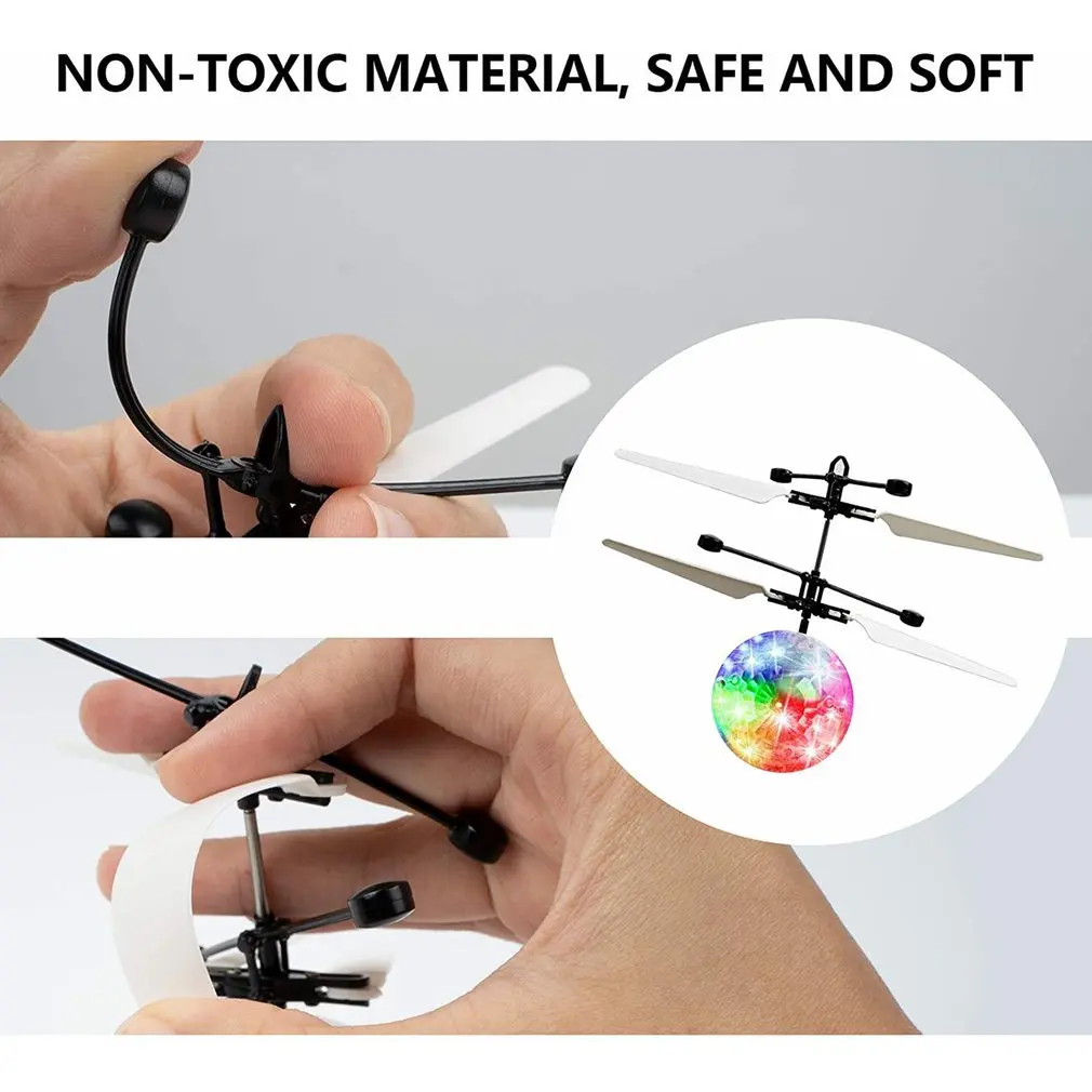 3. Инфракрасная индукция летающая игрушка: летящий мяч легко контролировать вручную. При включении устройства, для детей от 3 до 5 секунд после запуска, он будет Лететь Вверх, разумно, И это будет носиться на определенную высоту в воздухе после одного индукции, поэтому нет необходимости беспокоиться о том, что летающий мяч улетаю. Если вы хотите, чтобы остановить его, просто возьмите его со стороны и надписью «don't touch пропеллера.
