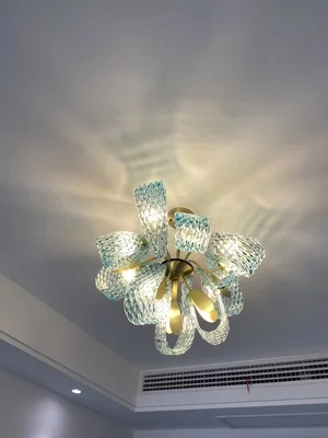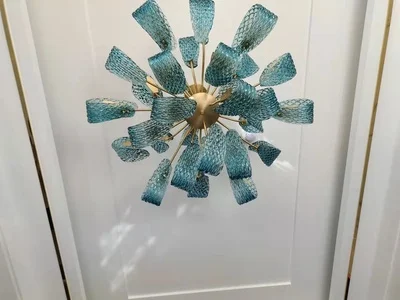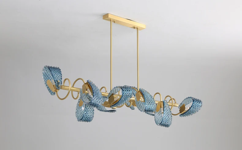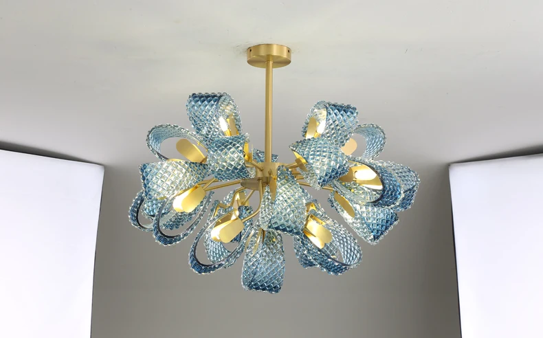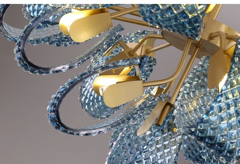 Арт-деко G9 светодиодный постмодерн медное стекло синий Красота Блеск Люстра Освещение Подвеска светильник Lampen для фойе