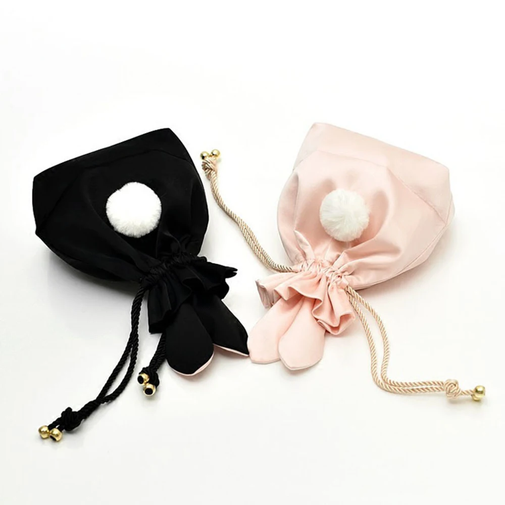 Сумка для конфет с заячьими ушками, переносная женская косметичка из шелка на Пасху, меховые мешочки для макияжа, сумка для ювелирных изделий, сумка-тоут, органайзер для хранения