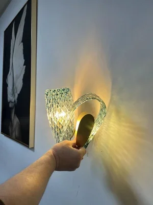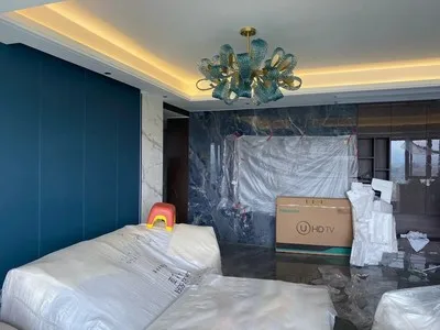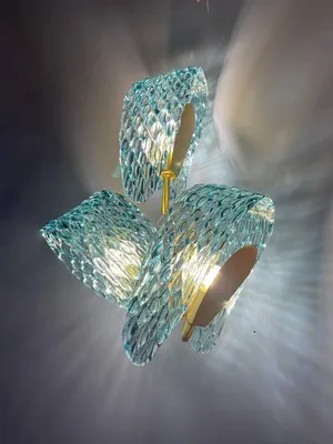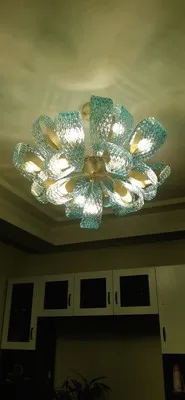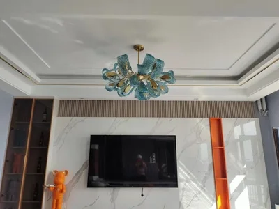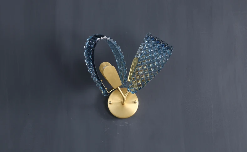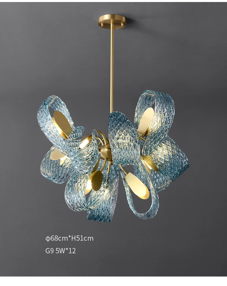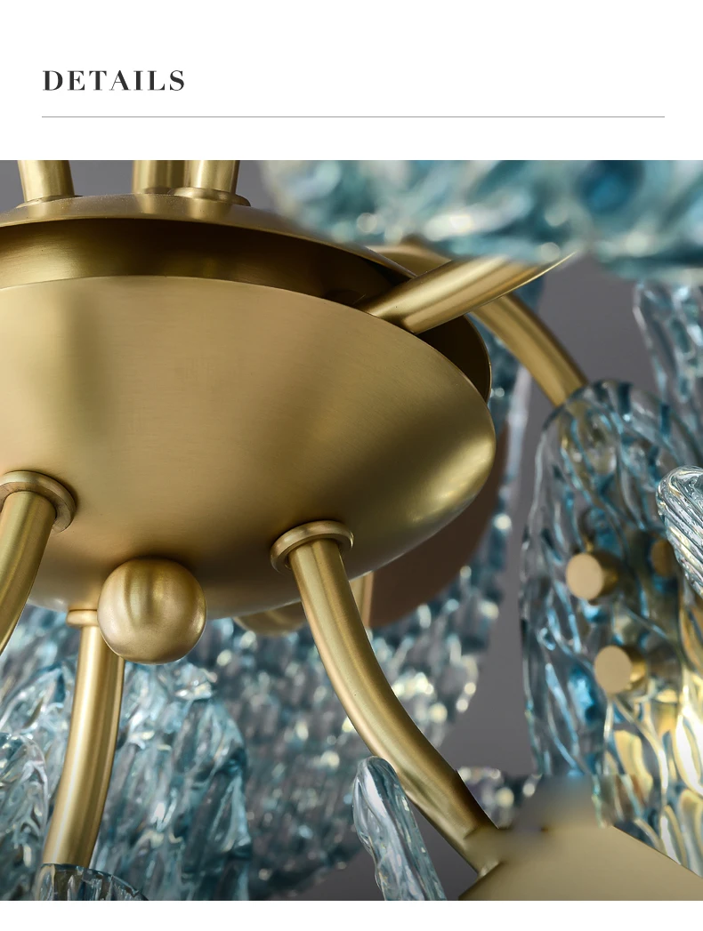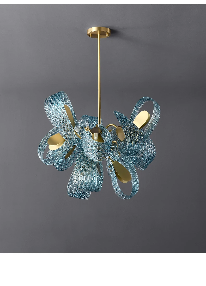 Художественный светодиодный подвесной светильник синего цвета из стекла и меди для фойе