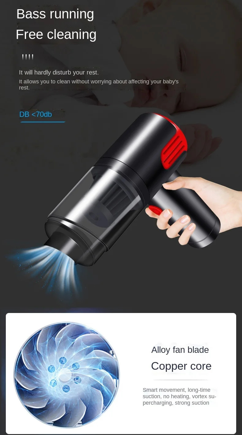 Модель: 6601<;br/> Материал: пластик <;br/> Номинальная скорость: 40000<;br/> Номинальное напряжение: 8,4 <;br/> Номинальная входная мощность: 120<;br/> основной объем применения: Автомобильный, бытовой <;br/> Мощность вакуумного всасывания: 9000