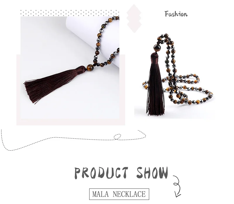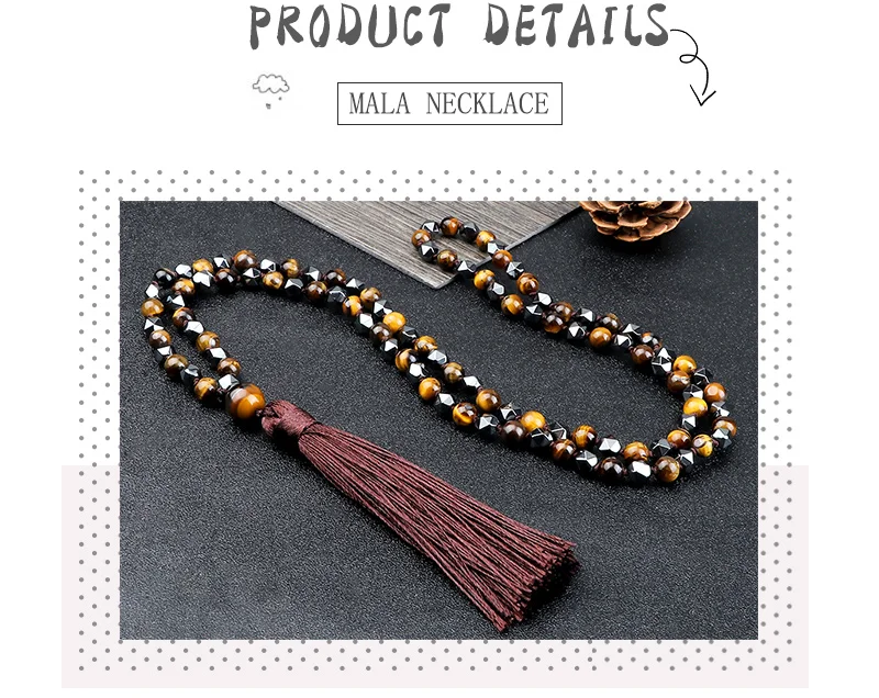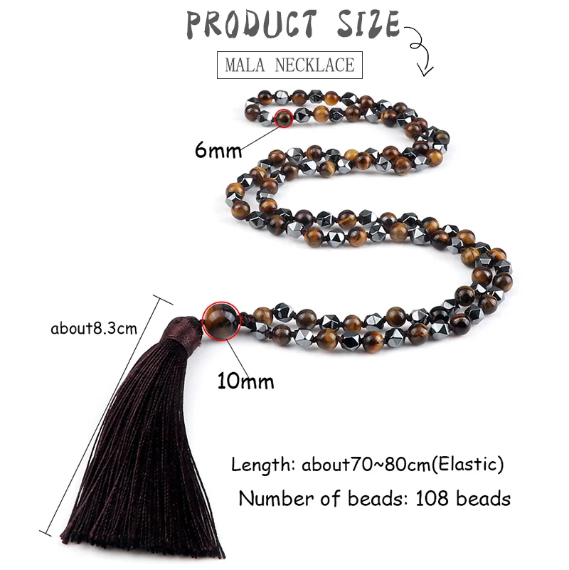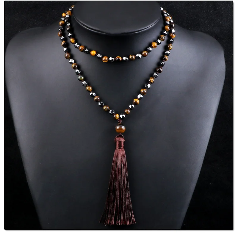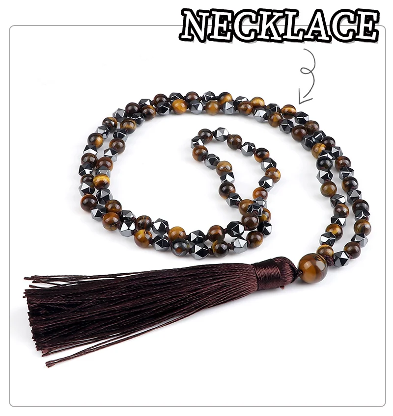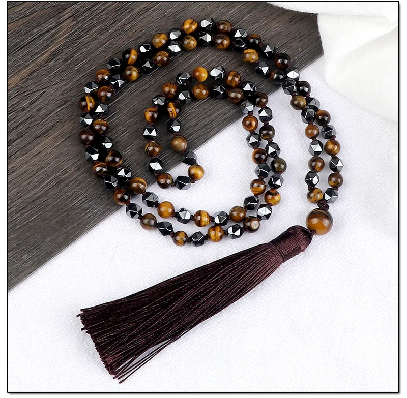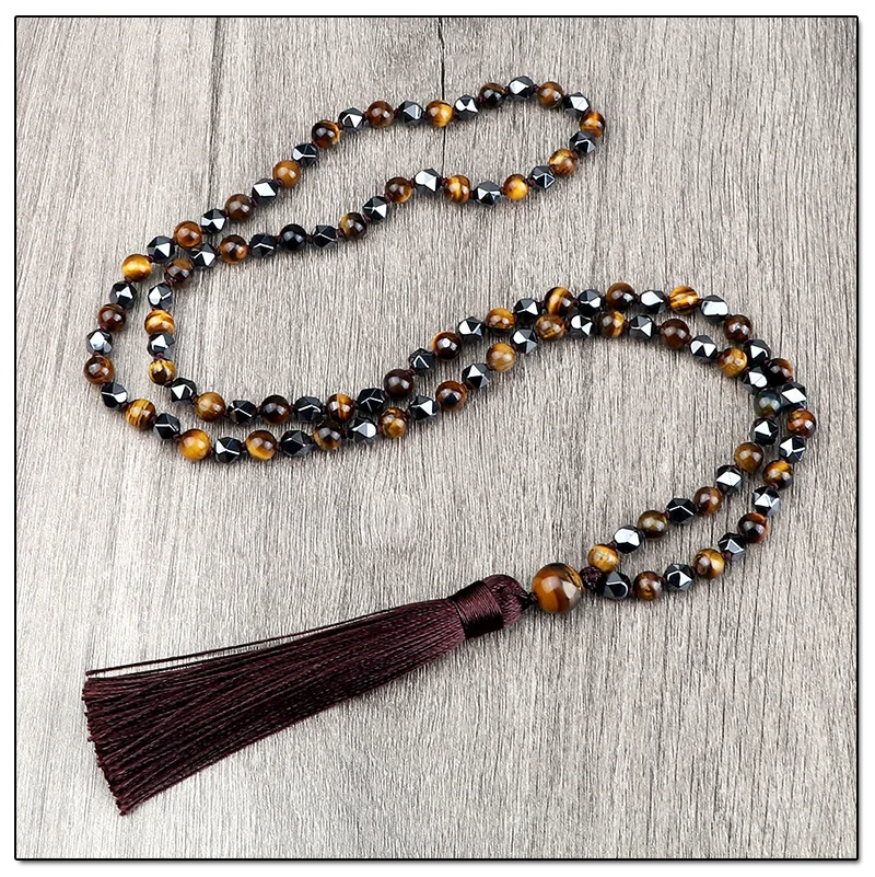 108 Mala бусы ожерелье 6 мм натуральный камень тигровые глаза оникс нерегулярные гематитовые четки ювелирные изделия длинное колье с кисточками для женщин и мужчин