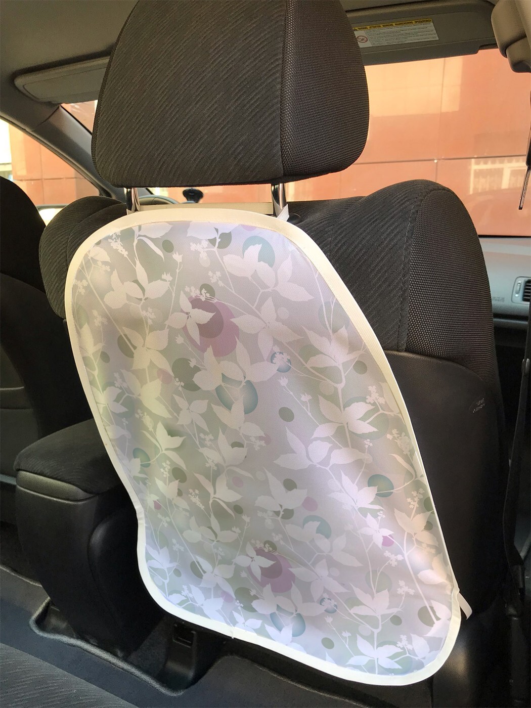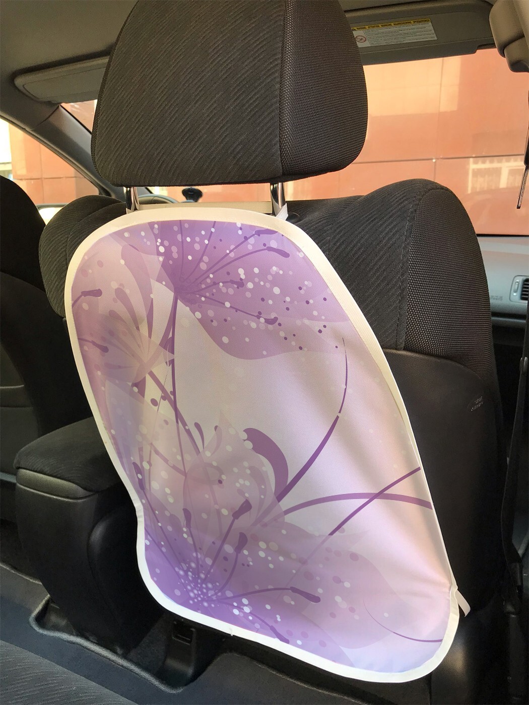 При перевозке в автомобиле малышей приходится фиксировать в детских креслах, где они остаются без непосредственного внимания родителей. Чтобы развлечь себя, многие дети принимаются пинать ногами расположенное перед собой водительское или пассажирское кресло. Это не только отвлекает водителя от дороги, но и постепенно портит обивку кресел переднего ряда. Декоративные защитные накидки на сиденья, украшенные принтами с детскими изображениями, способны переключить внимание ребенка на себя, и занять его разглядыванием яркой сюжетной картинки на все время дороги. Универсальная защитная накидка на спинку сиденья пошита из плотной и обработанной водоотталкивающей пропиткой ткани «Оксфорд». Обивка кресел останется целой и чистой, а ребенок будет спокойнее вести себя в дороге и не докучать взрослым.
