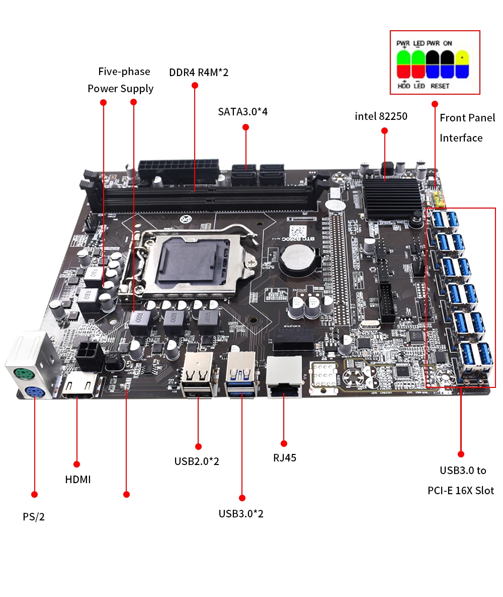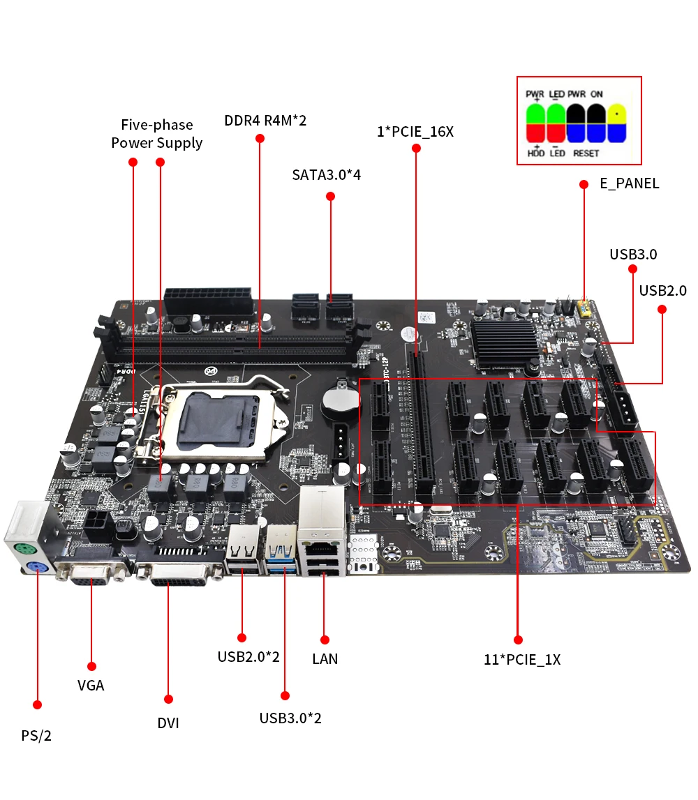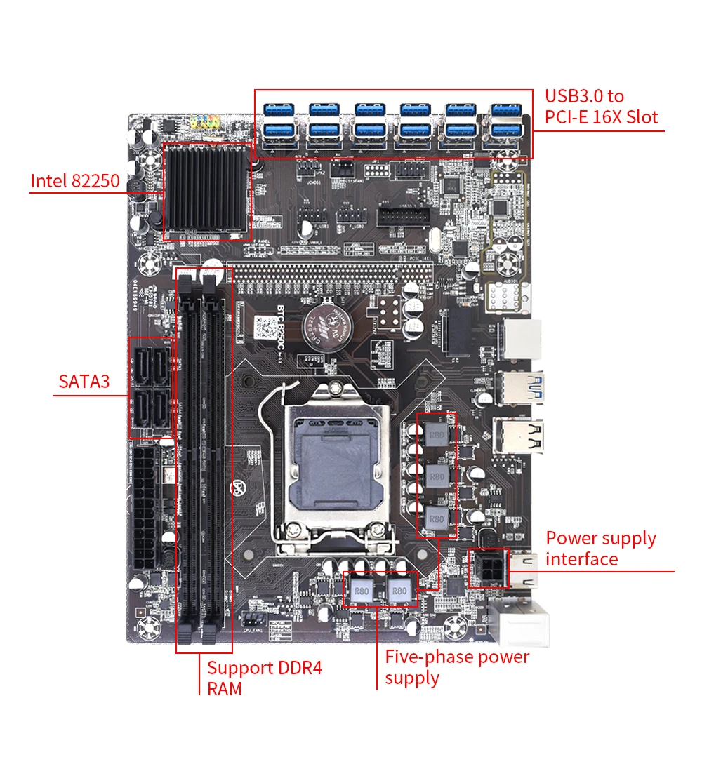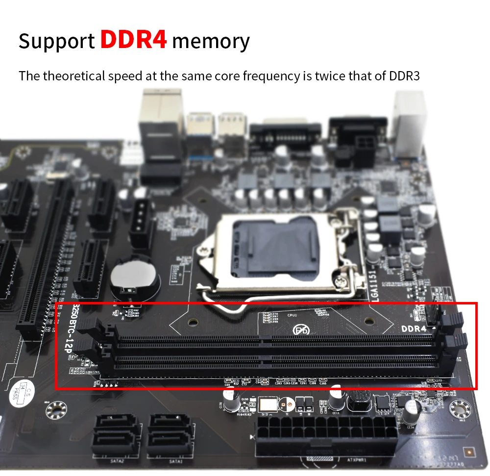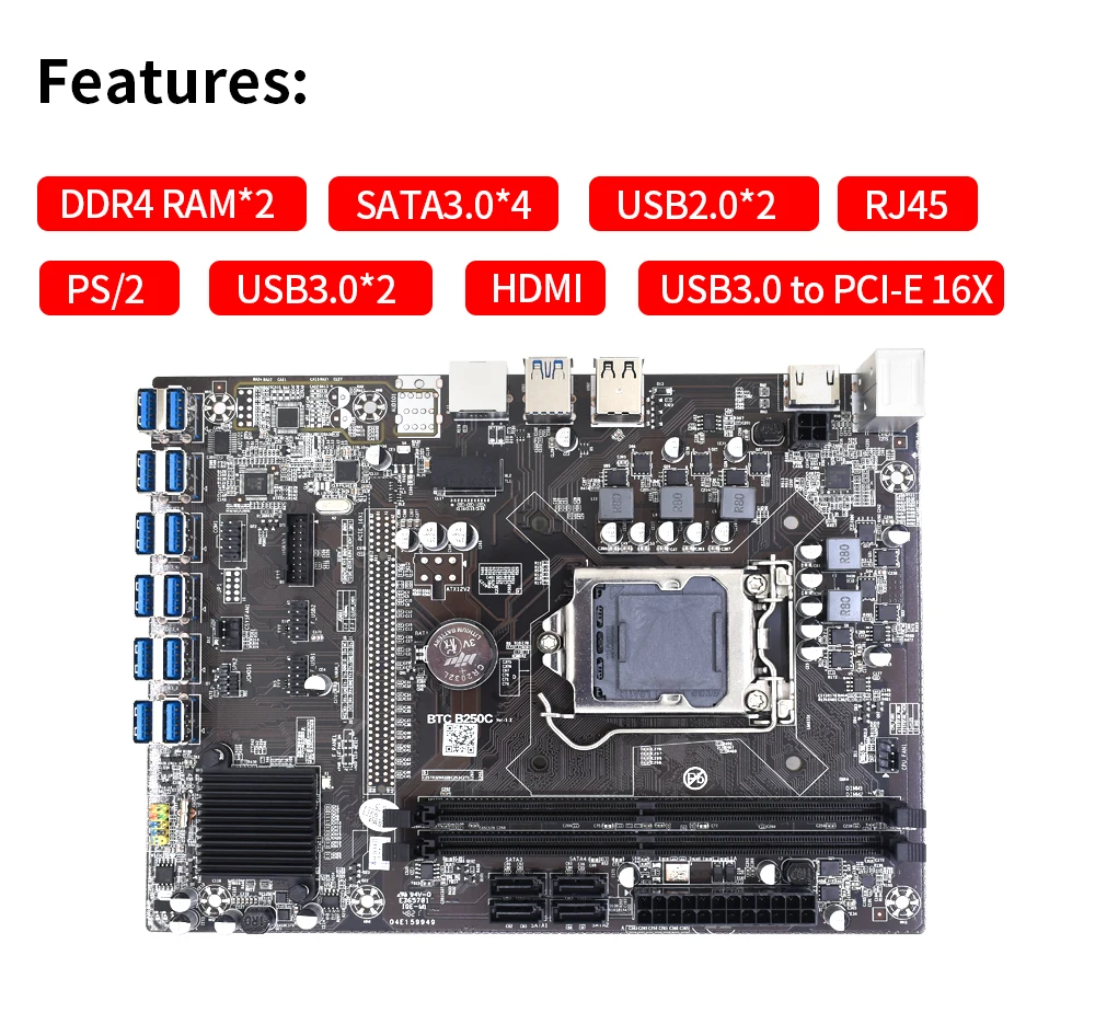 TISHRIC B250 BTC Mining материнская плата B250c материнская плата набор 12 PCI-E X16 PCIE до USB3.0 слот для видеокарты LGA1151 поддержка DDR4 RAM
