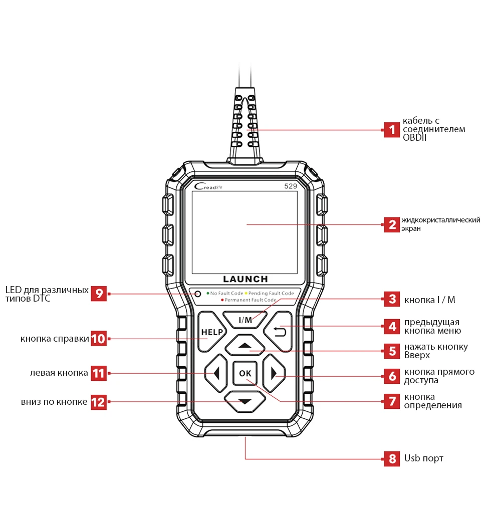 LAUNCH CReader 529 DIY OBDII сканер для двигателя
