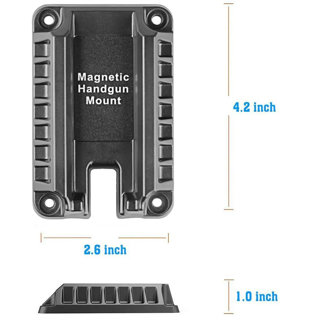DescriptionFeatures: 1. Only suitable for flat-top hands: With unique magnetic structure and innovative design, it can firmly fix any flat-top pistol. 2. Installation anytime, anywhere: for cars, trucks, vehicles, offices, cashiers, night, doorways, desks and tables. 3. With its unique magnetic structure and innovative design, it can firmly fix any flat-top pistol. 4. Whether you are in the car, on the desk or at home, the electromagnetic gun holder can cover you. 5. The plastic shell design will not scratch the gun or damage the sight. Description: It is useful and safe for users. With exquisite design, it could be used with a great experience. Specifications: Color: Black Size : 12CM * 7.5CM * 3.2CM ( 4.2inch * 2.6 inch * 1.0 inch ) Main Material: Plastic Package Included: 1 * Quick Magnetic Gun Holster Mount 4 * Long Screws 4 * Short Screws for Mounting