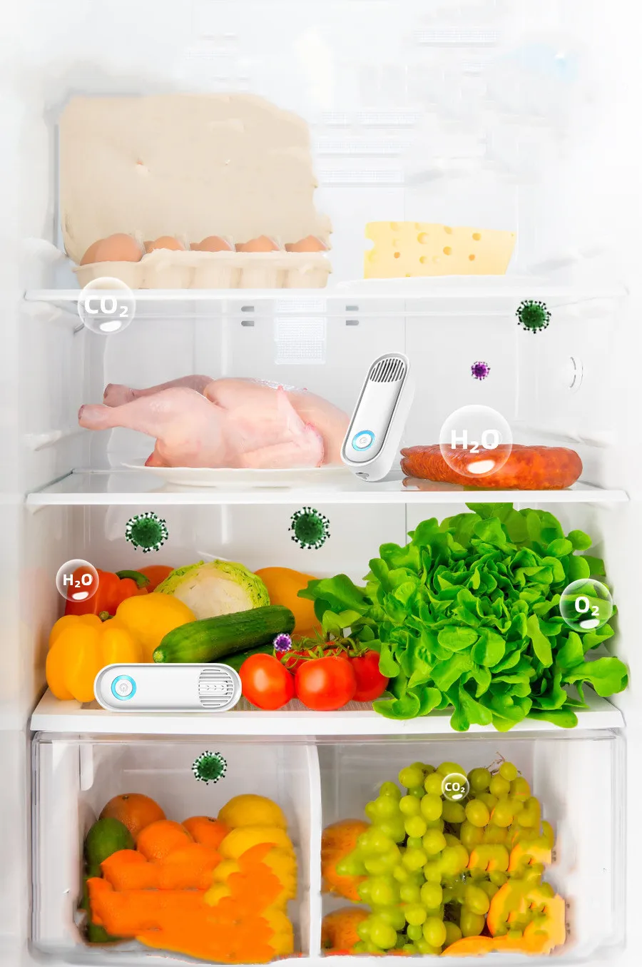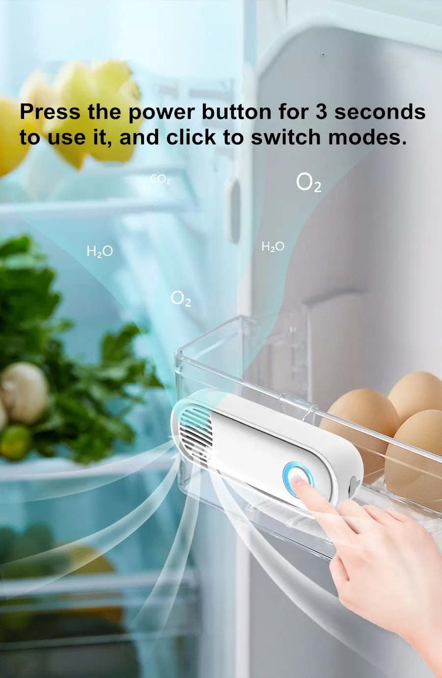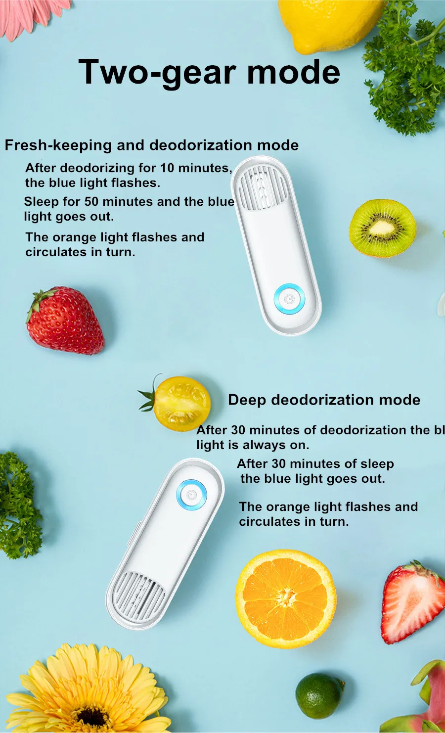 👍【Purify & deodorization】дезодорант холодильника генерирует озон и анионы, чтобы очистить воздух внутри вашего холодильника и удалить запах, чтобы сохранить еду и овощи свежими в течение длительного времени. Если дезодорирующий эффект не является удовлетворительным, вы можете включить его снова, чтобы войти в мощный режим дезодорирования.